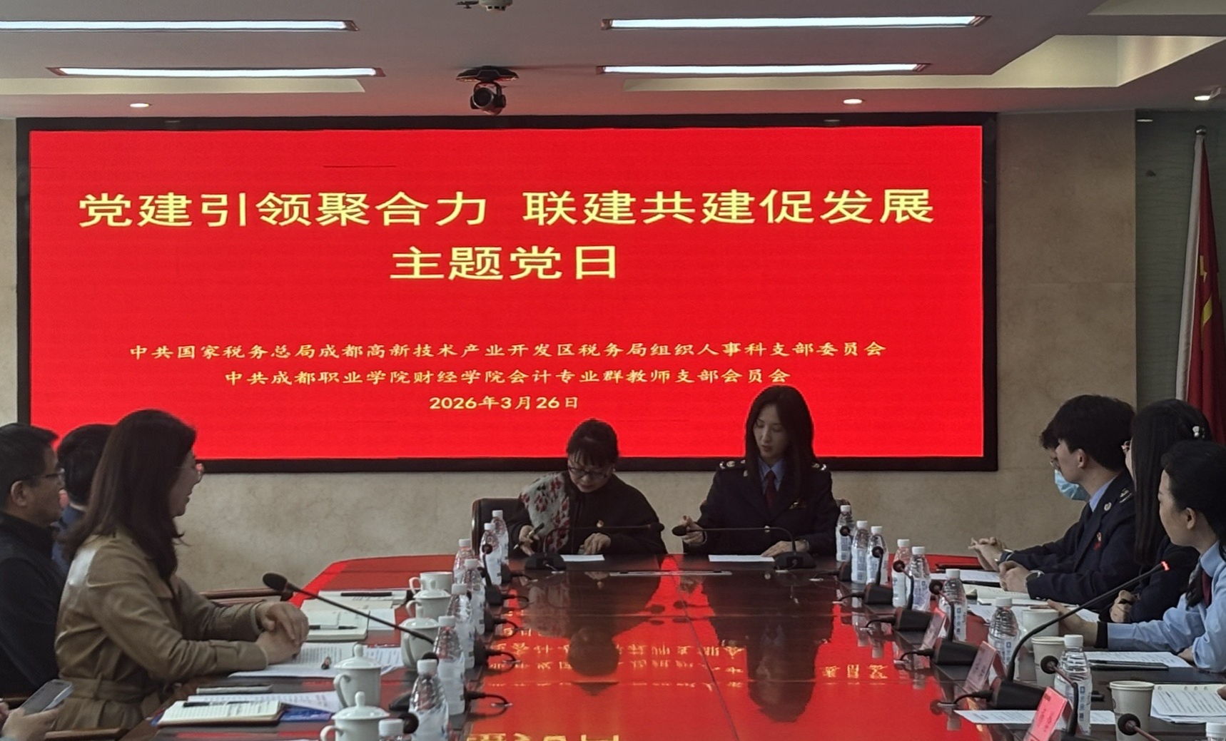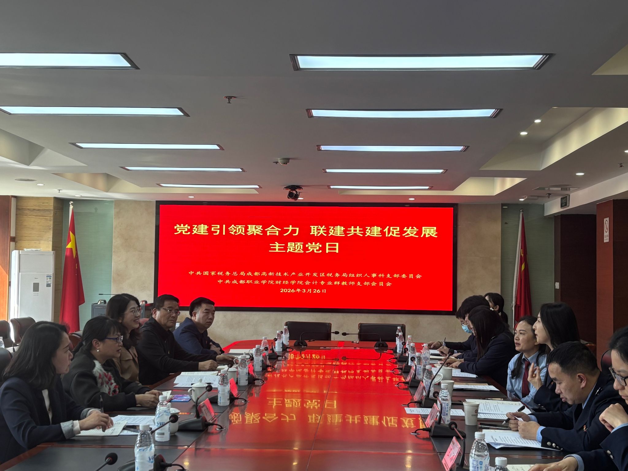 为进一步强化党建引领,深化校地合作,推动党建工作与业务发展深度融合,近日,财经学院会计专业群教师党支部与高新税务局组织人事科党支部联合开展了“党建引领聚合力,联建共建促发展”主题党日活动。双方支部党员代表齐聚一堂,通过政治理论共学、党建协议共签、业务工作共研,探索党建工作与业务发展同频共振的新路径。