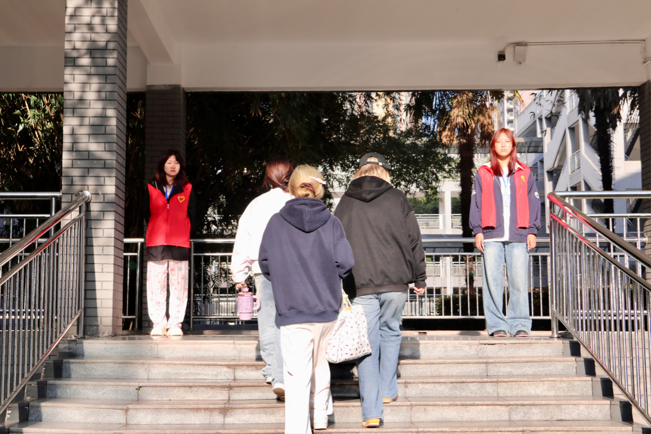 活动开展前,工作人员提前统筹部署,明确本次专项检查的核心内容与工作标准,将学生仪容仪表是否规范,以及杜绝带早餐、穿拖鞋进入教学楼等行为,确定为重点巡查整改内容。检查过程中,全体成员分工协作、各司其职,在教学楼各出入口、各楼层走廊等关键点位有序值守、全面巡查。大家以温和而认真的态度,对发现的不规范行为进行温馨提醒与耐心劝导,主动向同学们讲解校园教学区域的行为规范,引导大家自觉遵守校园规章制度,主动摒弃不文明习惯,以良好的精神风貌树立文明学子的形象。