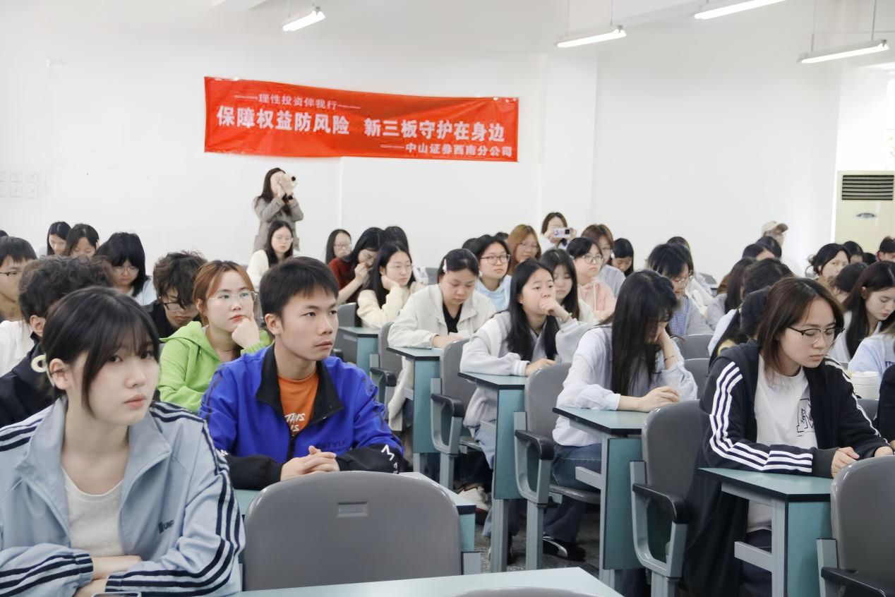 为引导同学们树立正确的金融安全观与投资理财观,提升风险识别能力,维护自身合法权益,财经学院于2026年4月15日在教学楼B205教室举办了“保障权益防风险,新三板守护在身边”金融教育讲座。讲座特邀中山证券西南分公司总监梁林主讲,吸引了100余名同学到场参与。