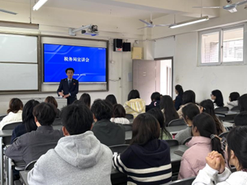 2026年3月19日,成都职业技术学院与成都高新区税务局联合举办的实习宣讲会于校内顺利举行。本次宣讲旨在面向在校学生招募14至18名实习生,来自高新区税务局组织人事科、税政科的老师及校方相关负责老师出席了本次会议,与到场约50名同学进行了深入交流。