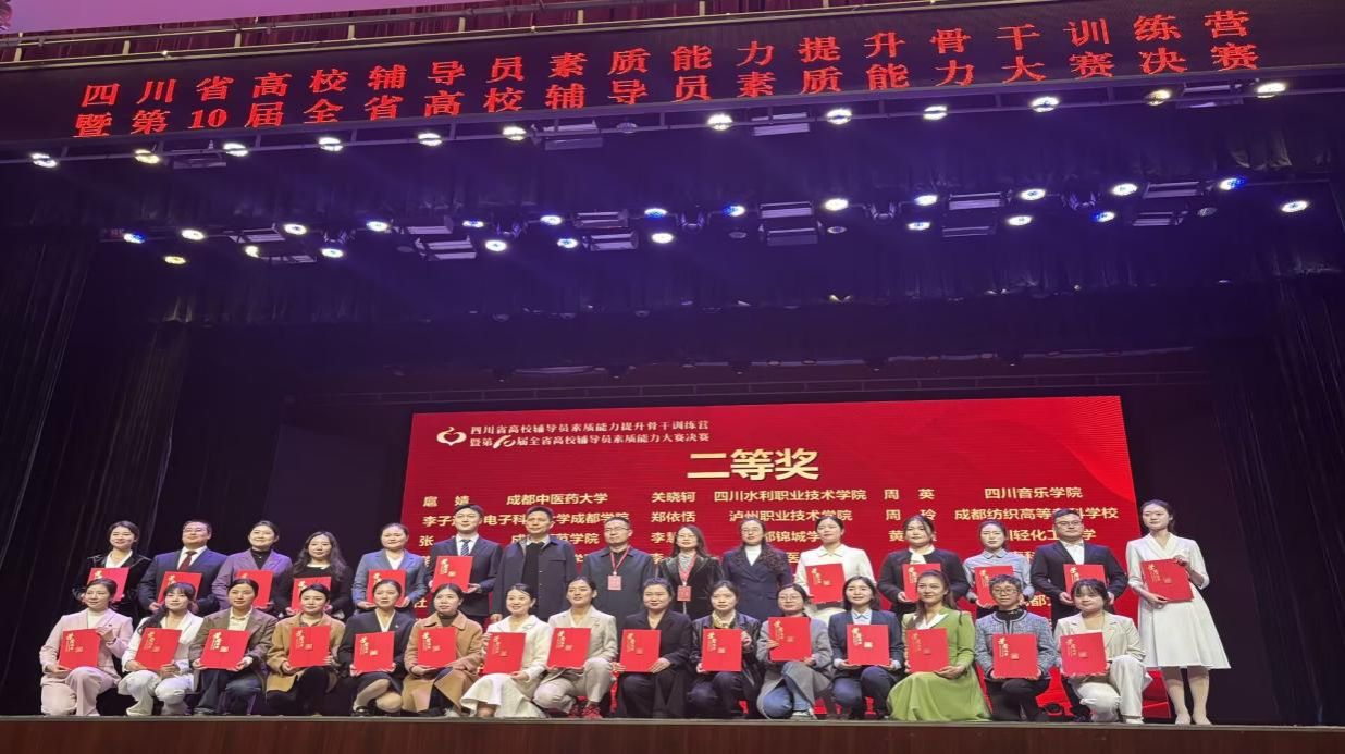 2025年11月15日至16日,由四川省委教育工委、四川省教育厅主办的四川省高校辅导员素质能力提升骨干训练营暨第十届全省高校辅导员素质能力大赛决赛在西华大学举行。我院辅导员吴世琴凭借扎实的理论功底、过硬的业务能力和精彩的现场展示,从来自全省125所高校的166名参赛选手中脱颖而出,荣获大赛二等奖。