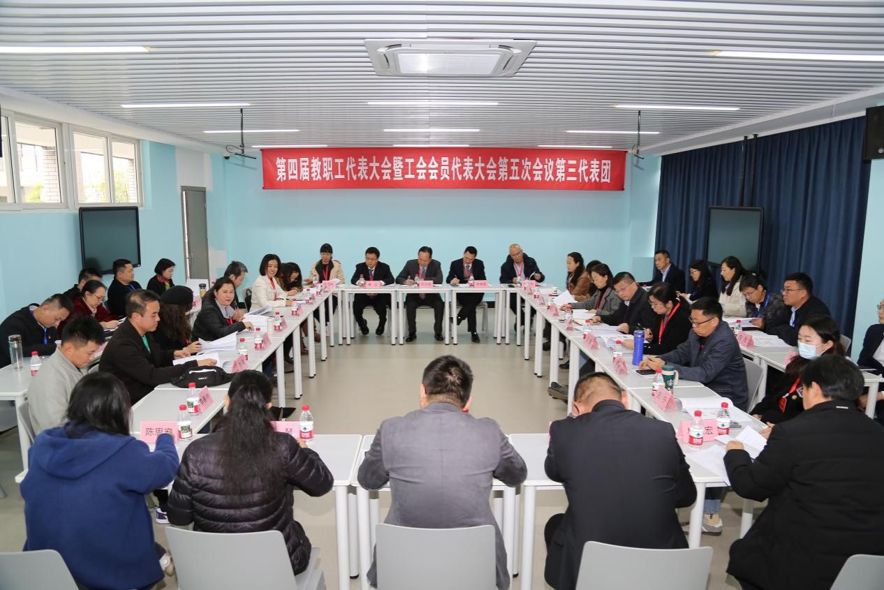 3月13日下午,成都职业技术学院第四届教职工代表大会暨工会会员代表大会第五次全体会议在高新校区棋艺学院多功能厅隆重召开。学校党委书记余治平、校长赵艳艳、副校长任忠、副校长王小军、副校长文绍春、副校长叶安胜、纪委书记田梅、原纪委书记李义、原副校长龙旭以及学校各二级学院、处室的95名正式代表、52名列席代表出席会议。会议由学校党委副书记、工会主席刘吕高同志主持。
