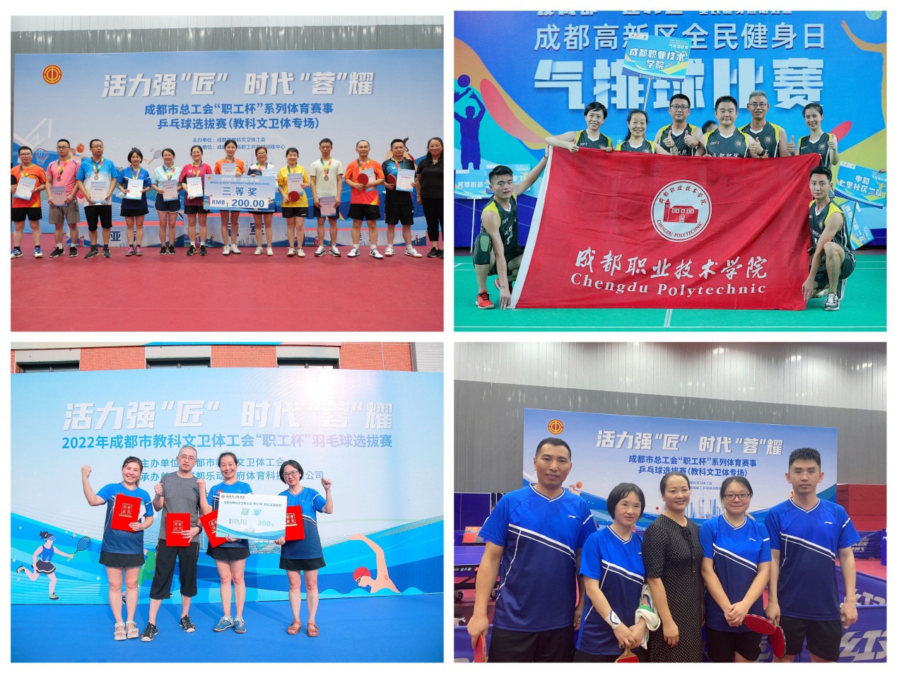 由成都市总工会举办的“职工杯”系列赛事选拔赛正如火如荼进行,今年“职工杯”比赛主题是“活力强‘匠’,时代‘蓉’耀”,是成都市总工会贯彻落实省第十二次党代会、市第十四次党代会精神的重要举措,也是全市工会系统喜迎党的二十大系列活动之一。学校工会积极组织各分工会和教职工协会组队参赛,在前期赛事项目中取得了优良成绩。