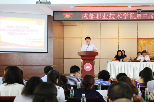 6月22日,学院第三届工会会员暨教职工代表大会第三次全体会议在高新校区召开,举手表决通过了《成都职业技术学院专业技术职务任职资格评审办法(试行)》。学院工会副主席张雪主持会议。