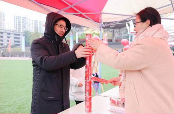 游戏结束后,教职工们凭借兑奖券到主席台兑换奖品,5张奖票可换三等奖,8张换二等奖,10张换一等奖。