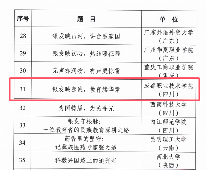 近期,教育部关心下一代工作委员会正式印发《关于公布2025年“读懂中国”活动入选作品名单的通知》(教关委函〔2025〕15号),我校投稿作品在参与的1100余所高校中被授予“读懂中国”活动表扬单位荣誉称号,选送的一篇征文作品荣获最佳征文奖,是本次活动中四川省唯一获评最佳征文的高职院校。