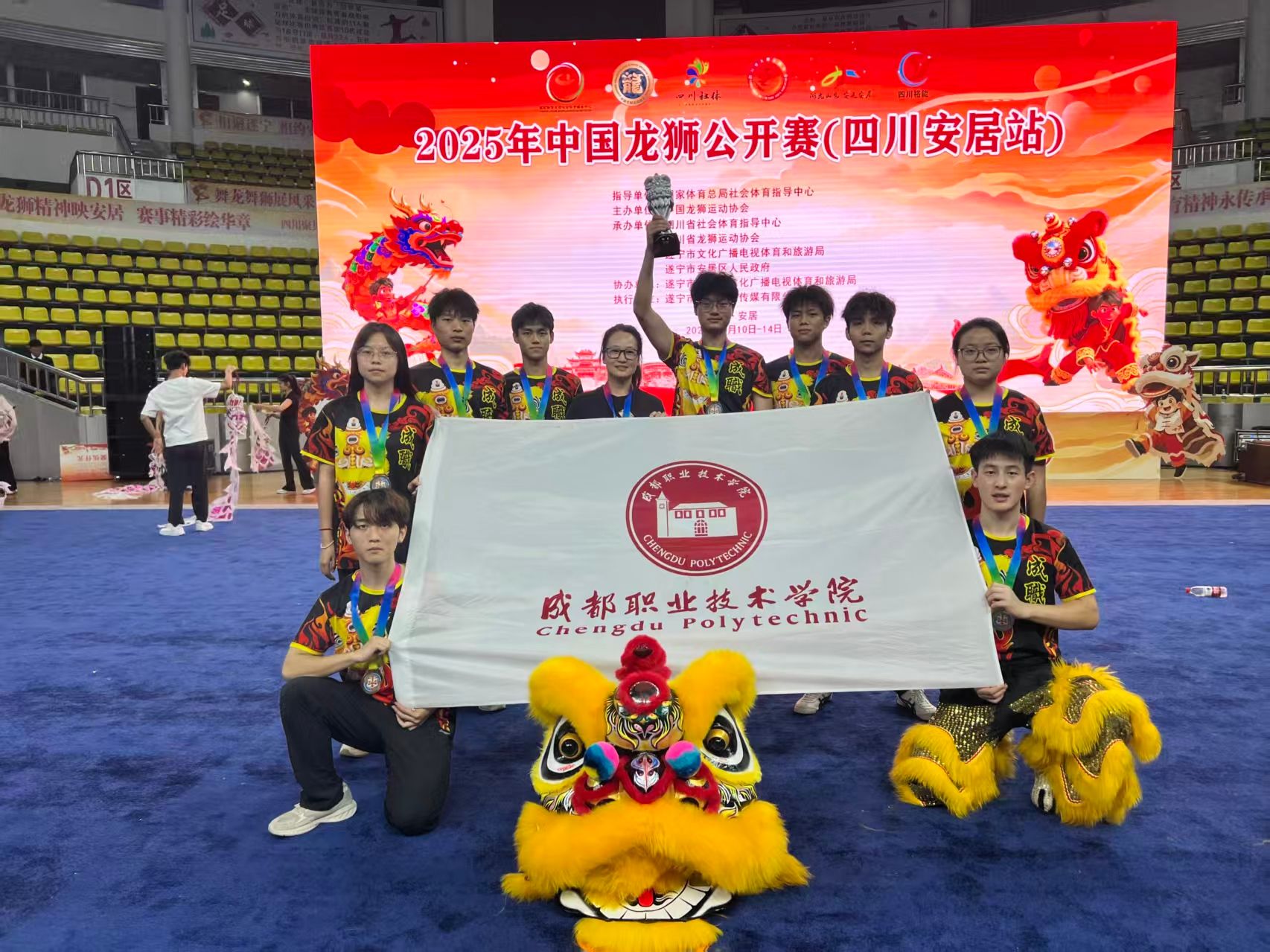 10月11日-15日,2025年中国龙狮公开赛(四川安居站)在遂宁市安居区体育中心圆满举办。比赛由国家体育总局社会体育指导中心指导,中国龙狮运动协会主办,遂宁市文化广播电视体育和旅游局、遂宁市安居区人民政府承办,共吸引来自吉林、上海、福建、河南、湖北、广东、广西、重庆、四川、云南10个省(区/市)16支队伍近200名运动员参赛。通识教育学院张瑜老师指导,城建学院崔静、陈子夫、李博文、李新阳、唐 琳、袁 林、刘祥彬、王耀旭组成的龙狮队凭借稳定的现场发挥,斩获南狮高桩自选项目银奖。