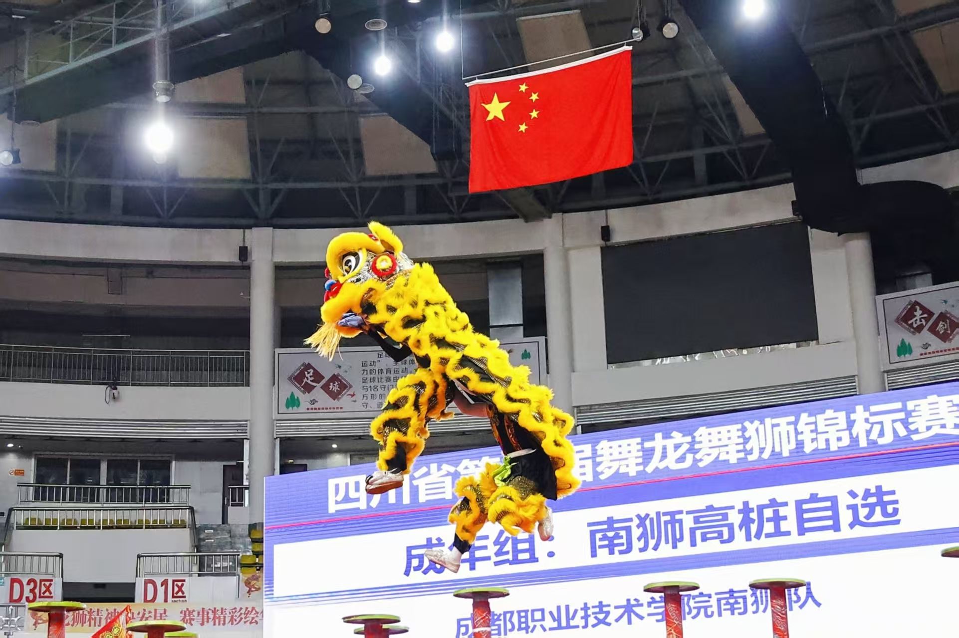 9日-10日龙狮队在四川省舞龙舞狮锦标赛获得全场最高分并有3名队员获二级运动员申报资格后,马不停蹄赶赴此次全国赛的赛场,面对首次参加全国比赛和连续高强度比赛的压力,赛前全队上下统一思想,强化作风,谦虚学习。场上,成职瑞狮伴随着激昂的鼓乐,时而跳跃腾飞,时而穿梭摆尾,动作刚劲有力又不失灵动,通过搔痒、打滚、采青等经典桥段,将憨态可掬与勇猛矫健的形象演绎得淋漓尽致。队员们以饱满的热情、稳定的发挥,将力量与美感、传统与创新完美融合。最终在赛场展示出成职风采,赢得现场评委与观众的阵阵掌声。