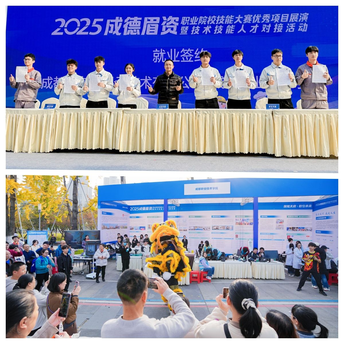 2025年11月30日,“技炫天府·职引未来——成德眉资职业院校技能大赛优秀项目展演暨技术技能人才对接活动”在成都市武侯区江滩公园成功举办。本次活动由成都市教育局、成都市人力资源和社会保障局联合主办,我校作为核心协办与重点参展单位全程深度参与。活动由教务处统筹组织,各二级学院及相关职能处室协同联动,以高水平策划、高标准呈现,全面展示了我校在职业教育领域的扎实成果与育人实效。