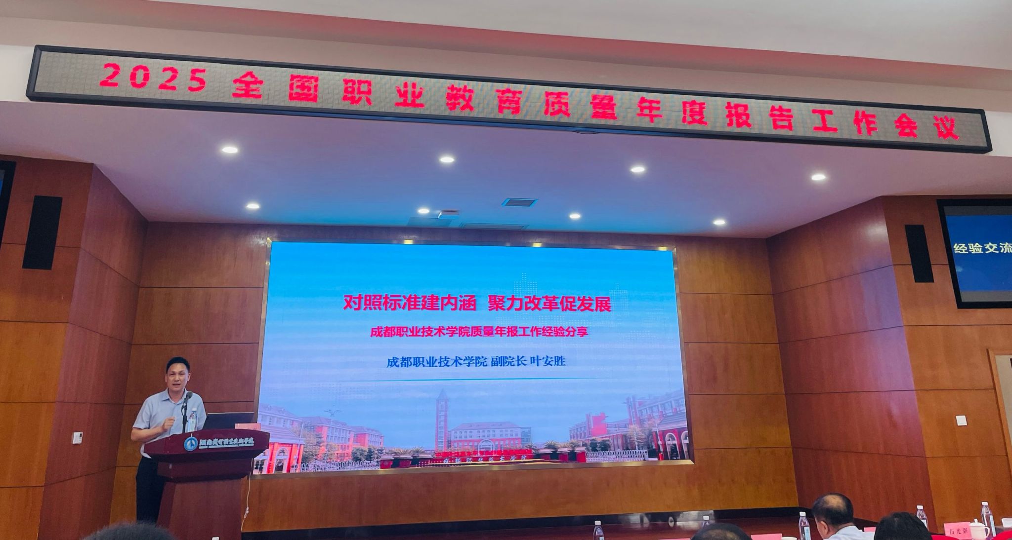 5月16日至18日,2025年全国职业教育质量年度报告工作会议在湖南长沙召开。教育部职业教育与成人教育司司长彭斌柏出席会议,来自全国31个省、自治区、直辖市及新疆生产建设兵团的教育行政主管部门业务相关领导、省级质量年度报告撰写代表、特邀专家等180余人参加会议。我校应邀作为全国两所高职学校代表之一、四川省职业院校唯一代表在会上做典型经验交流。