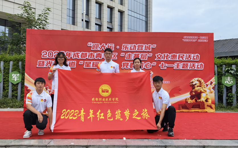 出征仪式结束后,参加实践活动的小伙伴们整装待发,软件学院分团委书记李慧超和辅导员吴曼老师带队正式开启2023年暑期“三下乡”——“成职青年行,助爱夕阳红”社会实践活动。