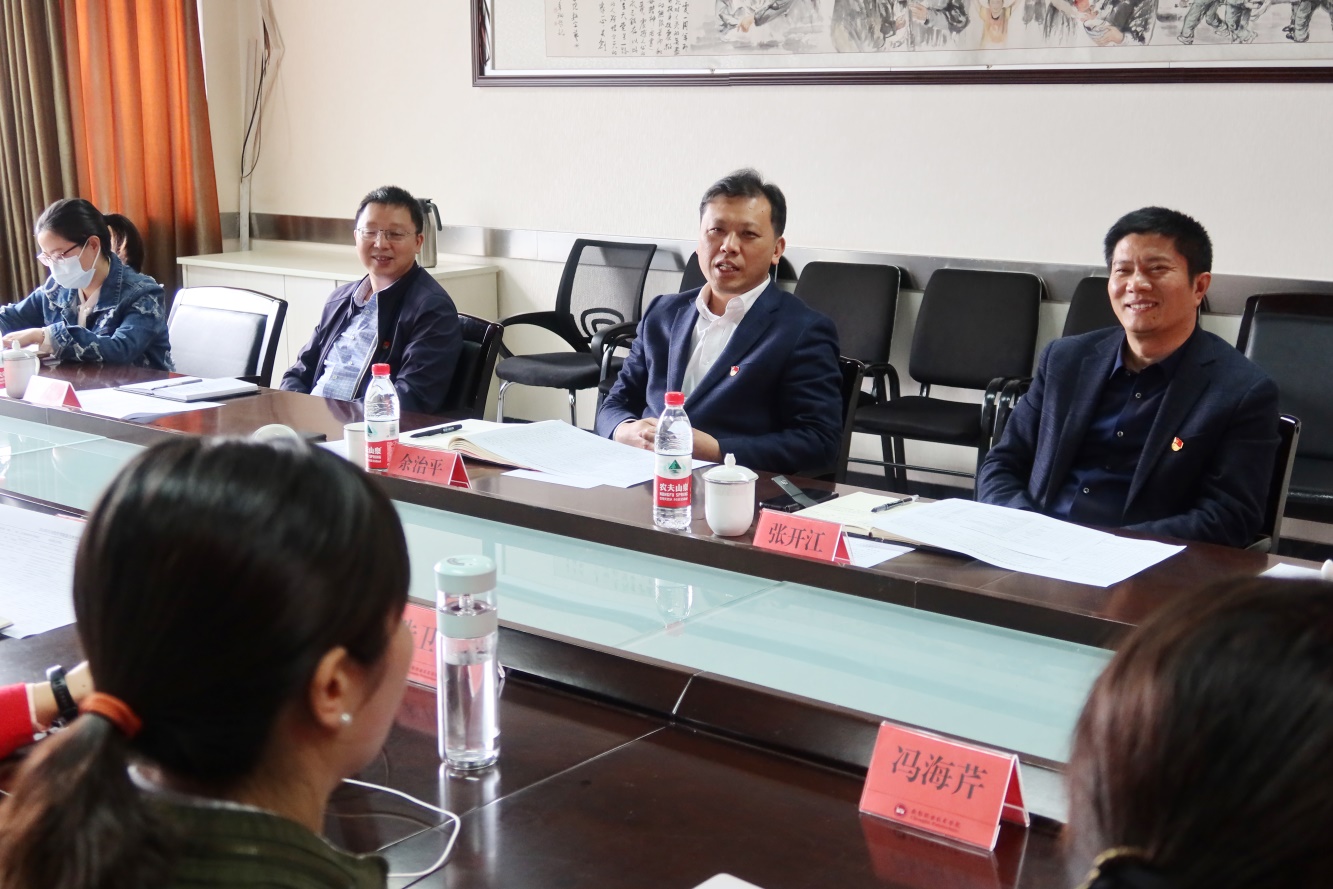 3月29日下午,党委书记余治平带队到我院与新进教师座谈,党委副书记张开江主持座谈会。