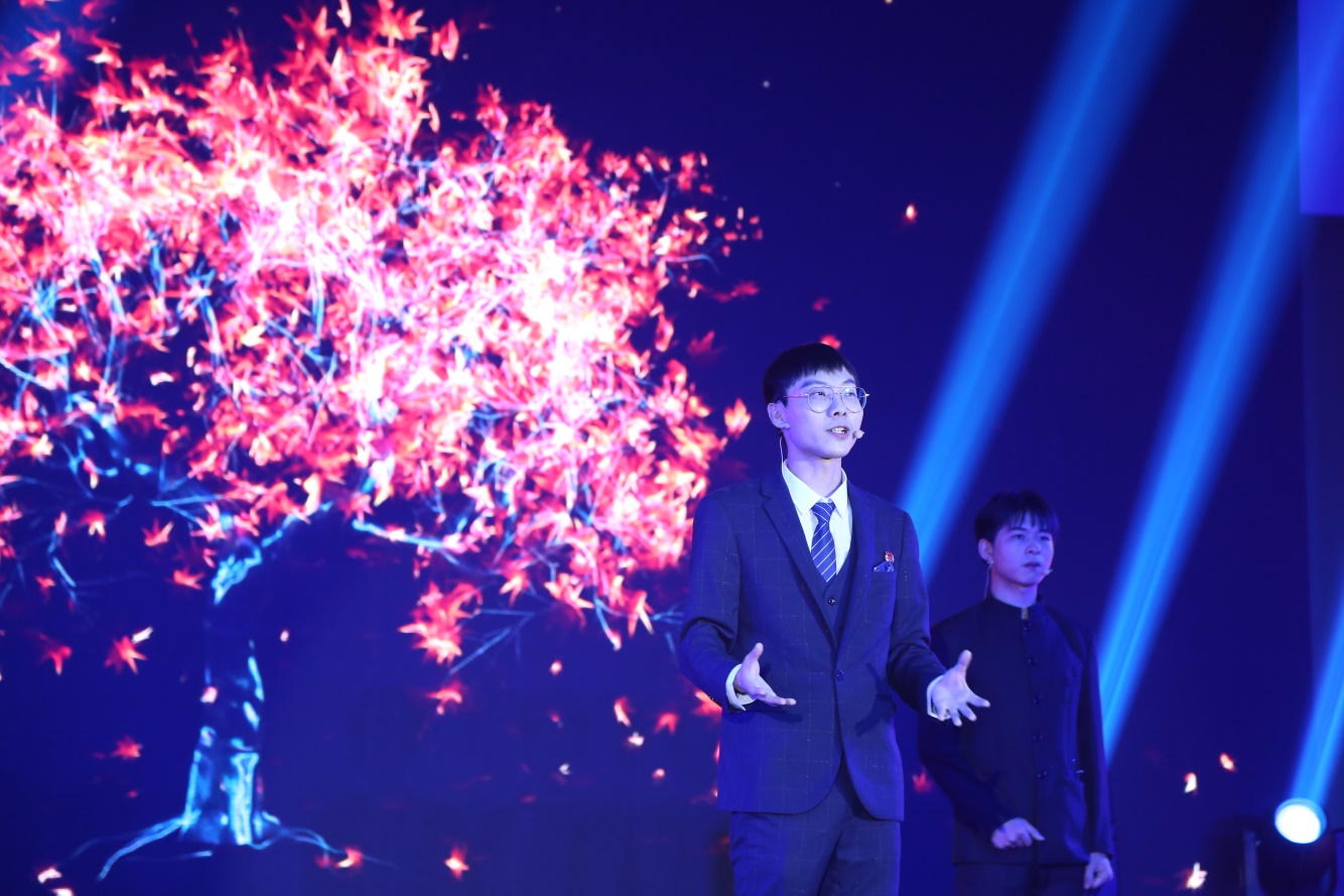 我院参赛节目从粒子光效树制作、台词打磨、人物塑造到现场演绎,全部由学生团队原创完成。我院参赛选手钟文、陈敏、魏麟、张南剑、唐唯一以声传情,从追求真理、燃烧理想两个信念,青年觉醒、青年奋进、青年强国三个篇章演绎出了一场由中国革命先驱们和成职青年跨越百年的对话。