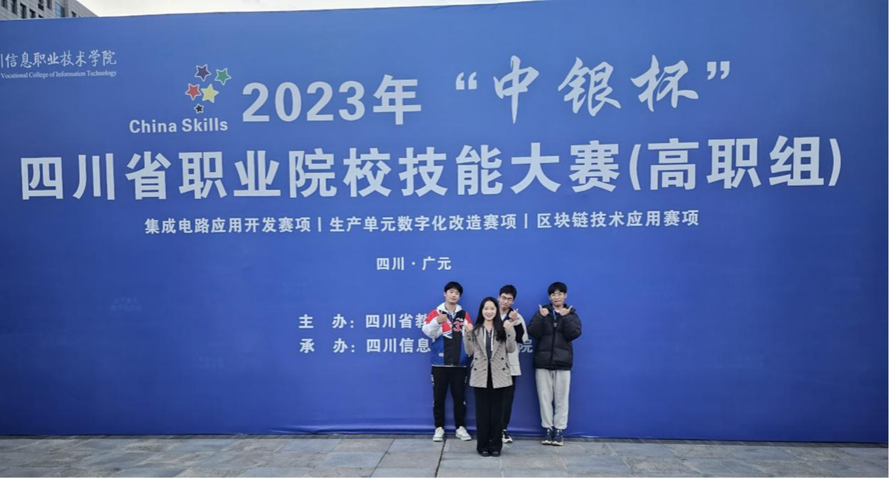 近日,2023年“中银杯”四川省职业院校技能大赛高职组“集成电路开发及应用”赛项落下帷幕,共有来自14所高职院校26支代表队参赛。我校软件学院集成电路技术专业团队连续三年蝉联该奖项的一、二等奖,本次参赛由孟奕峰、鲜昊宏两位老师指导的吴昌霖、吴爽、王棚三位同学组成的代表队获比赛一等奖;罗悦、肖冠南两位老师指导的李浩嘉、赵君豪、陈宝瑞三位同学组成的代表队获比赛二等奖。