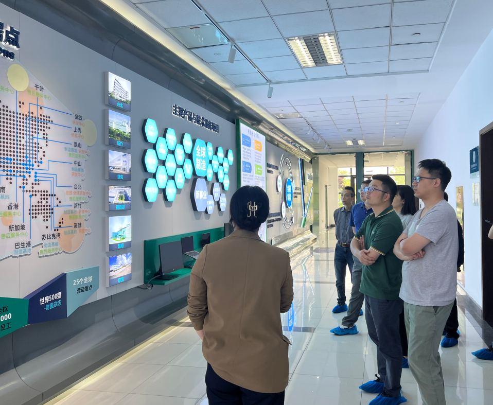在纬创资通相关负责人的带领下,教师团队参观了公司的电脑组装车间,测试车间、自动化生产线、质量控制等重要部门,详细了解了企业的生产流程、技术创新和管理模式。通过与企业技术人员和管理人员的交流,教师们对行业的最新发展趋势和企业对人才的要求有了更清晰的认识。