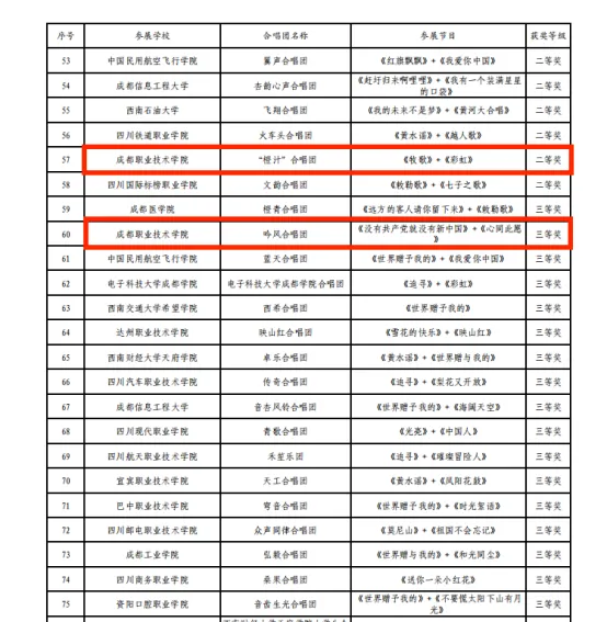 近日,由四川省教育厅、重庆市教育委员会、贵州省教育厅、云南省教育厅联合主办的第三届西部学校音乐周展演活动获奖名单正式公布。我校大学生艺术团选送的作品分别荣获大学生甲组二等奖和三等奖,充分展现了我校学子卓越的艺术风采与昂扬向上的精神风貌。