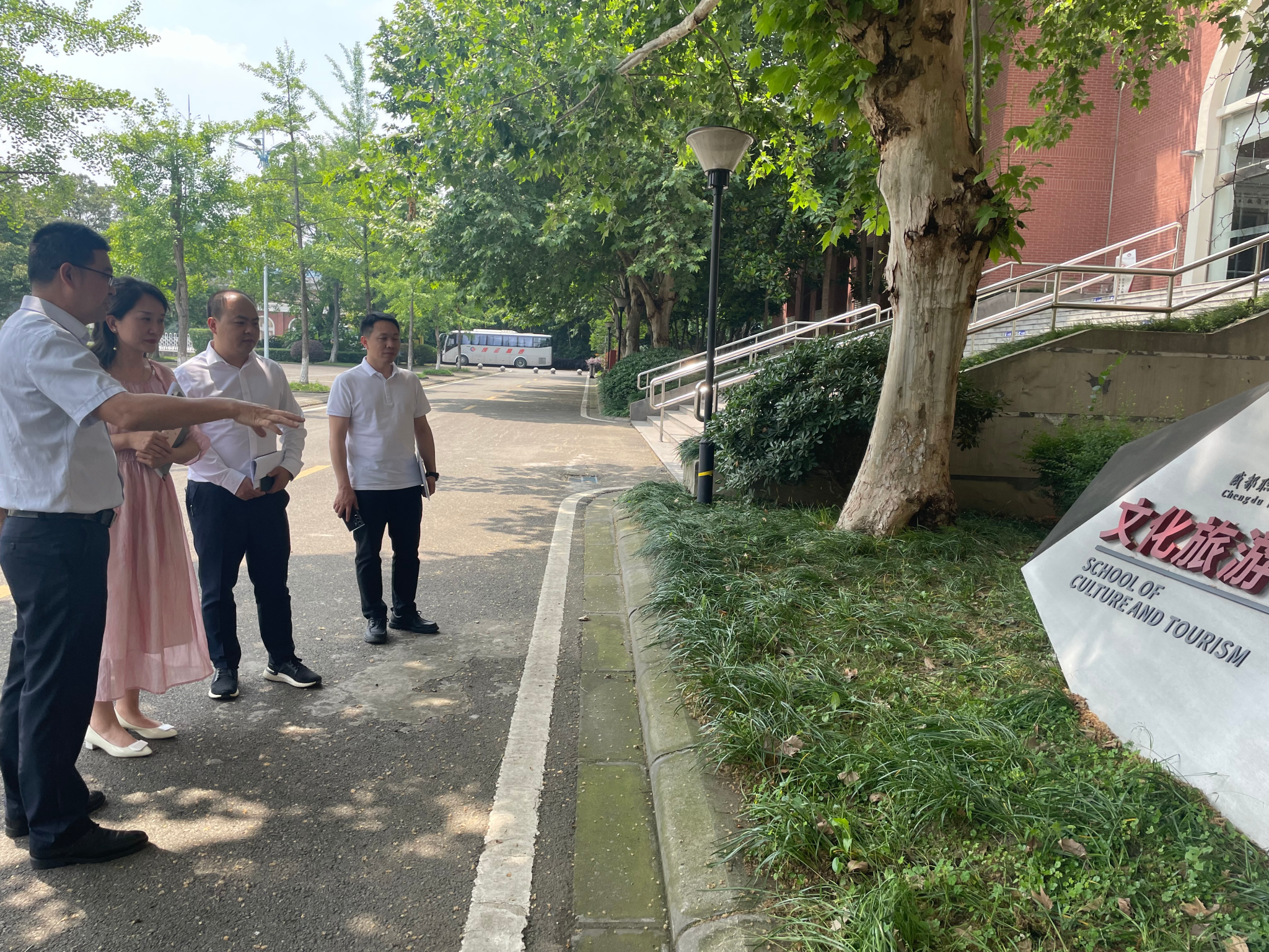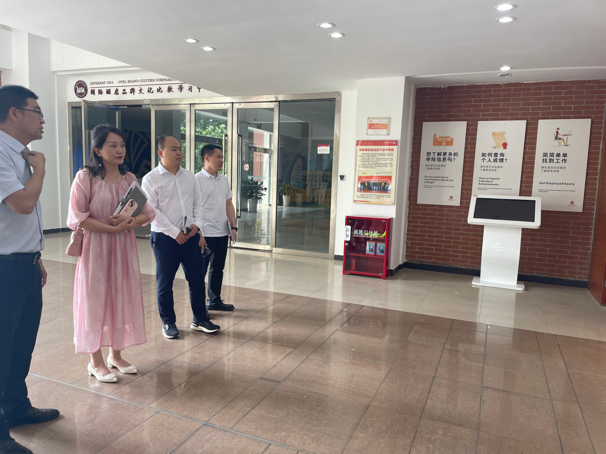 会议开始前,来访一行人在文化旅游学院党总支书记吴学伟的带领下参观旅游大楼,吴书记向介绍了文旅学院的发展情况。