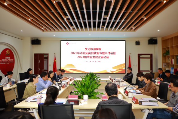 为进一步落实学校对就业工作的要求,推动分院就业工作顺利开展,确保总书记重要讲话精神和省委决策部署迅速落地落实,切实做好我校2023届毕业生就业工作,10月28日上午,文旅学院召开2022年访企拓岗就业专题研讨暨2023毕业生就业启动会。学校党委委员、副院长赖斌,招就处副处长陈薇及文旅学院全体行政干部、专业主任和毕业班辅导员,以及23位企业行业嘉宾代表参加了本次启动会。文旅学院院长洪光英担任会议主持人。