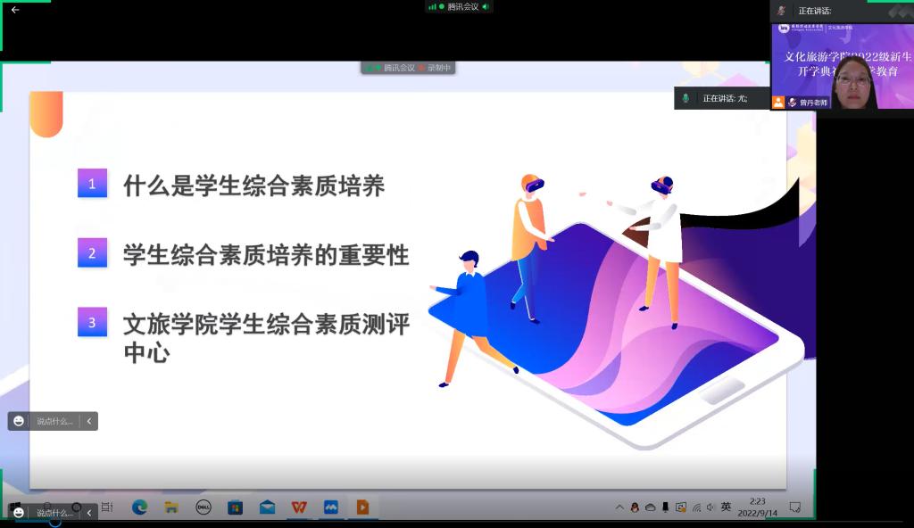 最后,文化旅游学院各专项工作负责老师对奖勤助贷、学生入党、心理健康教育、学团工作、学生综合素质测评、劳动教育五大专项相关内容开展了讲座。