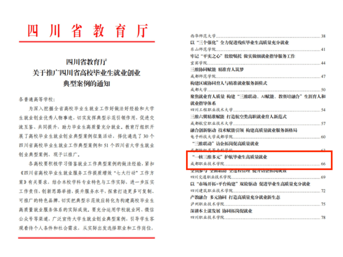 近日,四川省教育厅公布了2025年全省高校毕业生就业创业典型案例遴选结果。文化旅游学院报送的《“一核三维多元”护航毕业生高质量就业》案例,获评“四川省高校毕业生就业工作典型案例”,标志着学院在就业育人机制创新与实践方面取得重要成果。