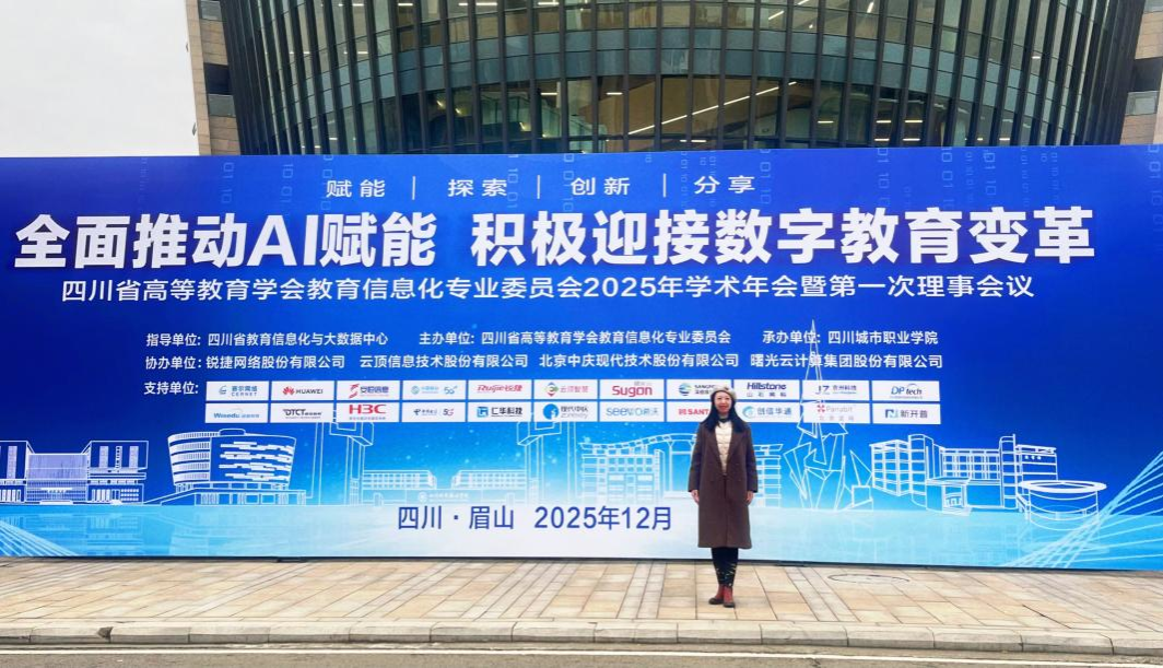 2025年12月13日,四川省高等教育学会教育信息化专业委员会2025年学术年会在眉山举行。本次年会以“全面推动AI赋能,积极迎接数字教育变革”为主题,汇集了省内多所高校的信息化负责人、专家与企业代表。