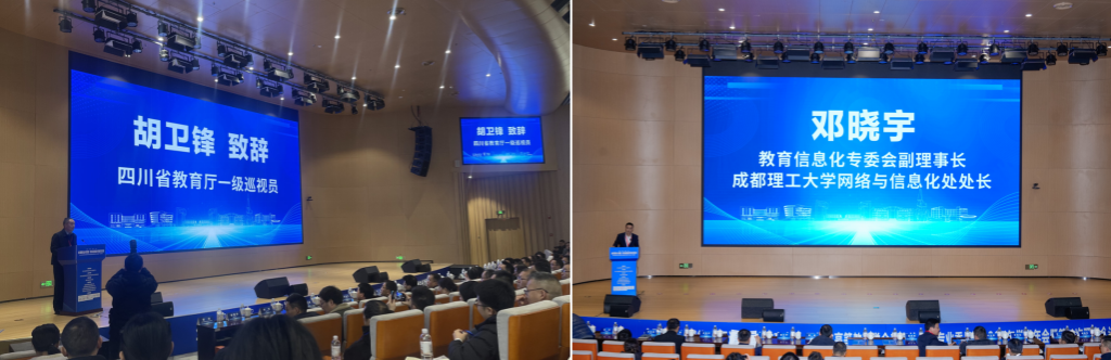 本次年会紧扣国家教育数字化战略及四川省“人工智能+教育”行动要求,设置了工作总结、案例发布、专家分享、主题研讨等环节。四川省教育厅一级巡视员胡卫锋、四川大学信息化办公室主任段磊等领导专家围绕“高等教育管理数字化转型”“智慧校园建设创新应用”“职业教育数字化生态重塑”等议题发表见解。清华大学、西南交通大学等高校代表也分享了人工智能在智慧教学场景搭建、教育大数据治理、可信教育体系构建等方面的实践经验。