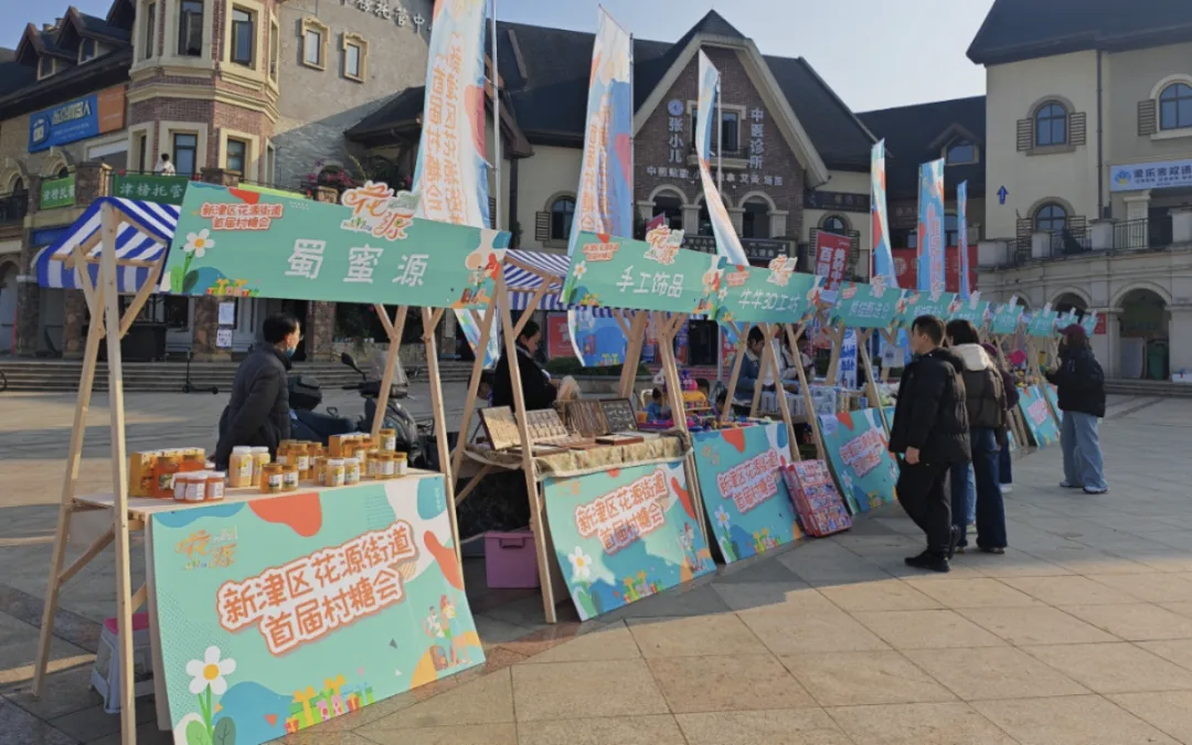 2025年12月7日至17日,新津区花源街道首届“村糖会”在金科·廊桥水乡光广场举办。成都职业技术学院文化旅游学院(非物质文化遗产院)旅游管理、文化创意与策划专业的周壹颖、郭继丹、李治怡等6名同学,携自主设计的非遗吧唧、非遗主题冰箱贴等文创产品亮相现场,以青年创意诠释非遗魅力,吸引众多市民驻足。