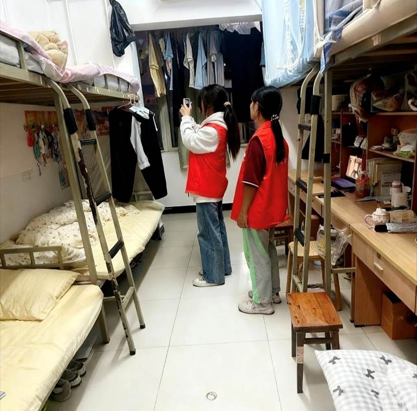 检查过程中,自管会学生干部以“公平、细致、务实”为原则,逐一对宿舍内务进行检查评分。多数宿舍地面一尘不染,书桌物品摆放井然有序,书本、文具分类收纳;床铺整理规范,床单平整无褶皱;衣物晾晒有序,阳台无积水污渍,整体呈现出“窗明几净、条理清晰”的良好状态。
