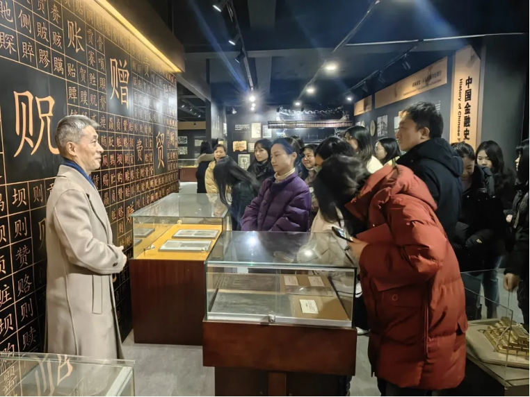 在我校成都金融文化教育体验馆参观环节,财经学院王卫老师重点介绍了“镇馆之宝”铁路债券及背后关联近代历史的珍贵史料,讲述馆内融合非遗文化的金融展品与红色金融故事,让大家直观感受金融文化的教育价值,也为专业数字化转型背景下的课程开发提供了鲜活灵感。参观中,来访教师不时驻足记录、交流感悟,对展馆“以展品讲历史、以文化育新人”的职业教育理念深度认同。