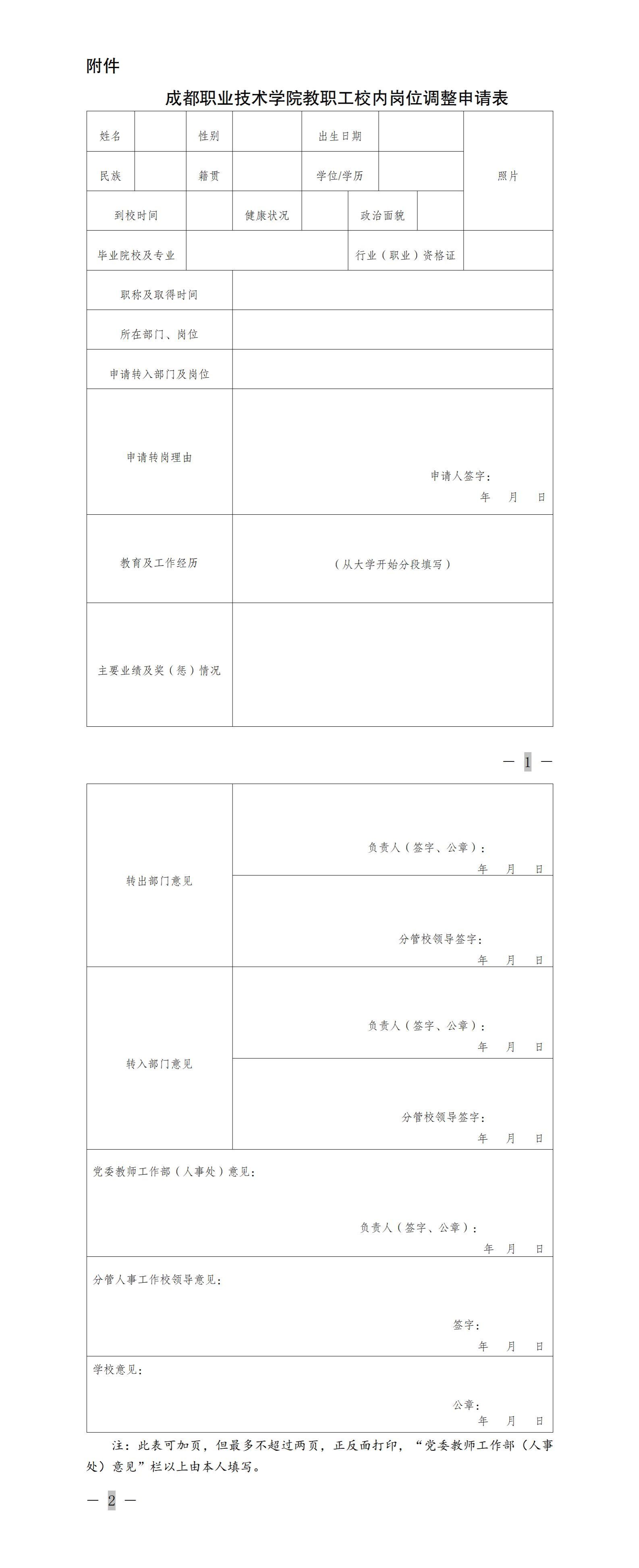 成都职业技术学院教职工校内岗位调整申请表(新)