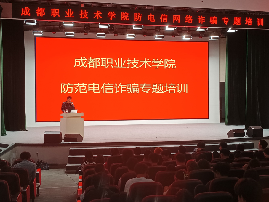为进一步加强学生防诈意识,提升反诈能力,维护学生切身利益,确保校园平安稳定,4月18日,学校开展防范电信诈骗专题培训。本次培训邀请高新公安分局反诈中心警官陈艳、和平派出所警官王德担任培训讲师,450余名学生参与培训。