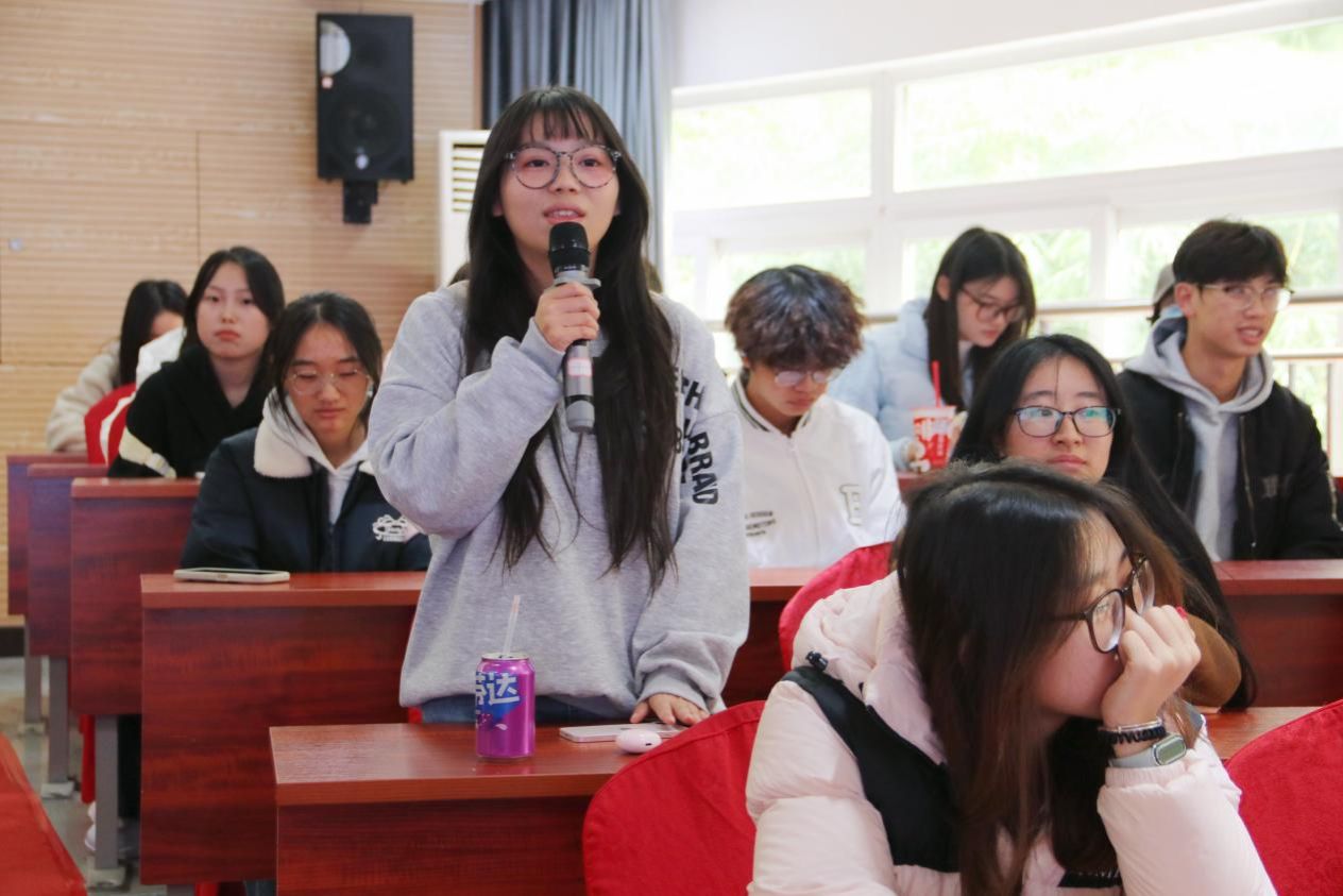 在互动交流环节中,同学们围绕未来规划相关问题踊跃提问,漆珈妤学姐结合自身经验与实践,逐一给出具体建议,补充了专升本备考的相关建议。希望同学们坚守“脚踏实地、拒绝浮躁”的核心备考原则,坚持自我节奏,避免外界干扰。同时也鼓励大家在专注学业的同时积极参与社会实践,提升综合素质。分享尾声,漆珈妤为在场同学寄予了深切期望,同学们眼中满是对未来的坚定与期待。此次分享既解答了学业与就业的困惑,也增添了同学们对未来的信心。