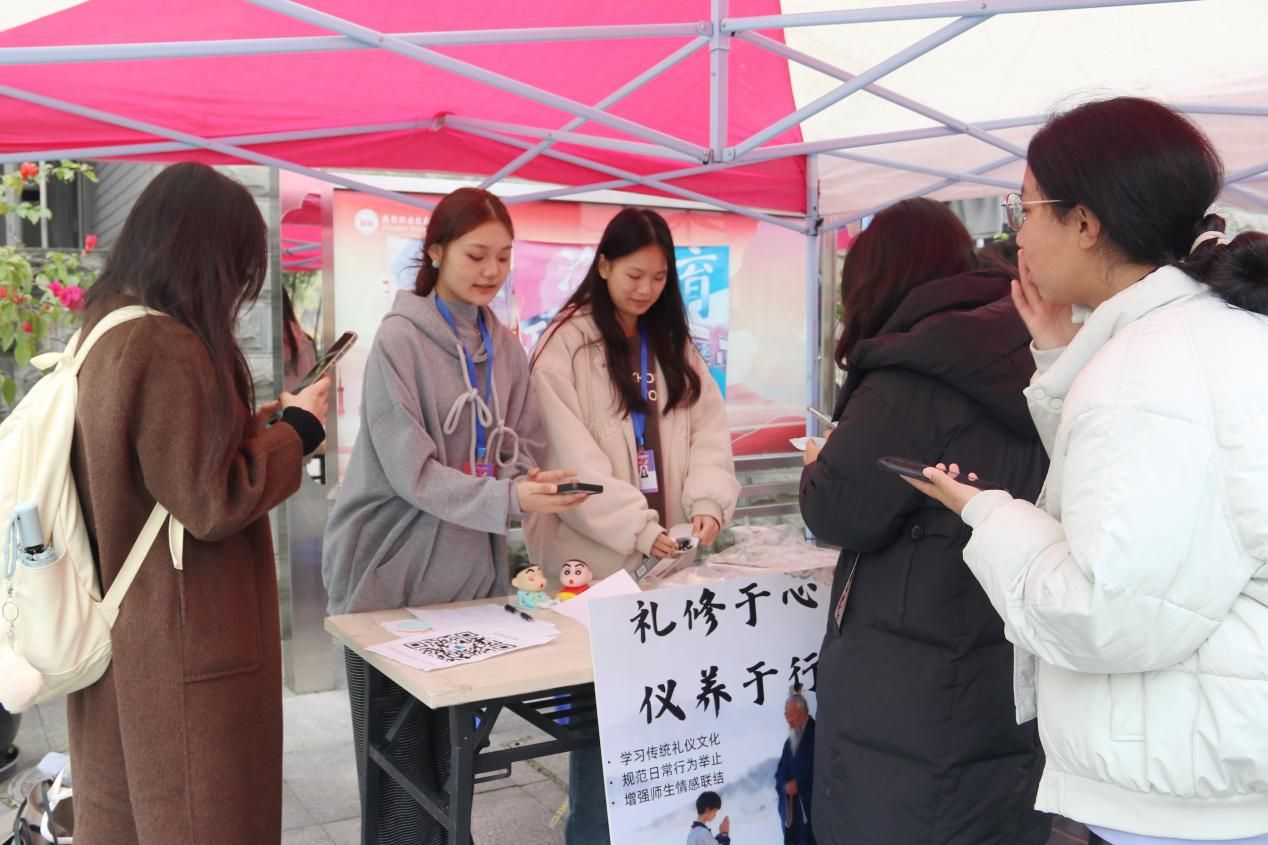 活动以“知礼、懂礼、守礼”为核心,涵盖仪表之礼、用餐之礼、言谈之礼、待人之礼四大板块。活动前期,工作人员的精心筹备为活动顺利开展筑牢基础,他们通过趣味问答、规范讲解等形式,向参与的同学们普及校园场景中的礼仪知识。从课堂交往到日常相处,从传统拱手礼到现代沟通礼仪,同学们在互动学习中掌握到了实用性的礼仪技能。此外,丰富的奖品设置极大激发了同学们的参与热情。答题摊位前,同学们紧盯“仪表规范”“言谈禁忌”等礼仪题目,与同伴轻声探讨校园场景中的礼仪细节。大家眼神专注、应答笃定,每一次认真作答,都是对“知礼、懂礼”的生动诠释。在集章抽奖的队伍旁,完成打卡的同学脸上洋溢着灿烂的笑容。活动在同学们轻松愉悦的氛围下进入尾声,他们不仅从中学习到了礼仪知识,同时也在互相交流中分享了实践心得。