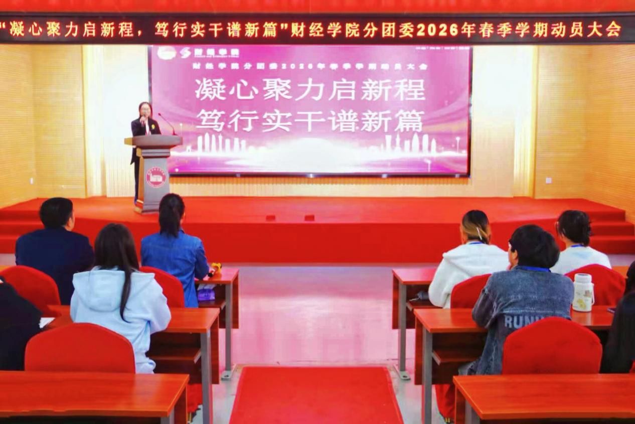 为明确新学期工作方向,凝聚团学组织奋进力量,财经学院分团委于2026年3月11日在财经学院学术报告厅举行了主题为“凝心聚力启新程,笃行实干谱新篇”的干部干事动员大会。莅临此次会议的领导有财经学院党总支副书记赵刚、分团委副书记吴世琴,财经学院分团委全体干部干事参与其中。