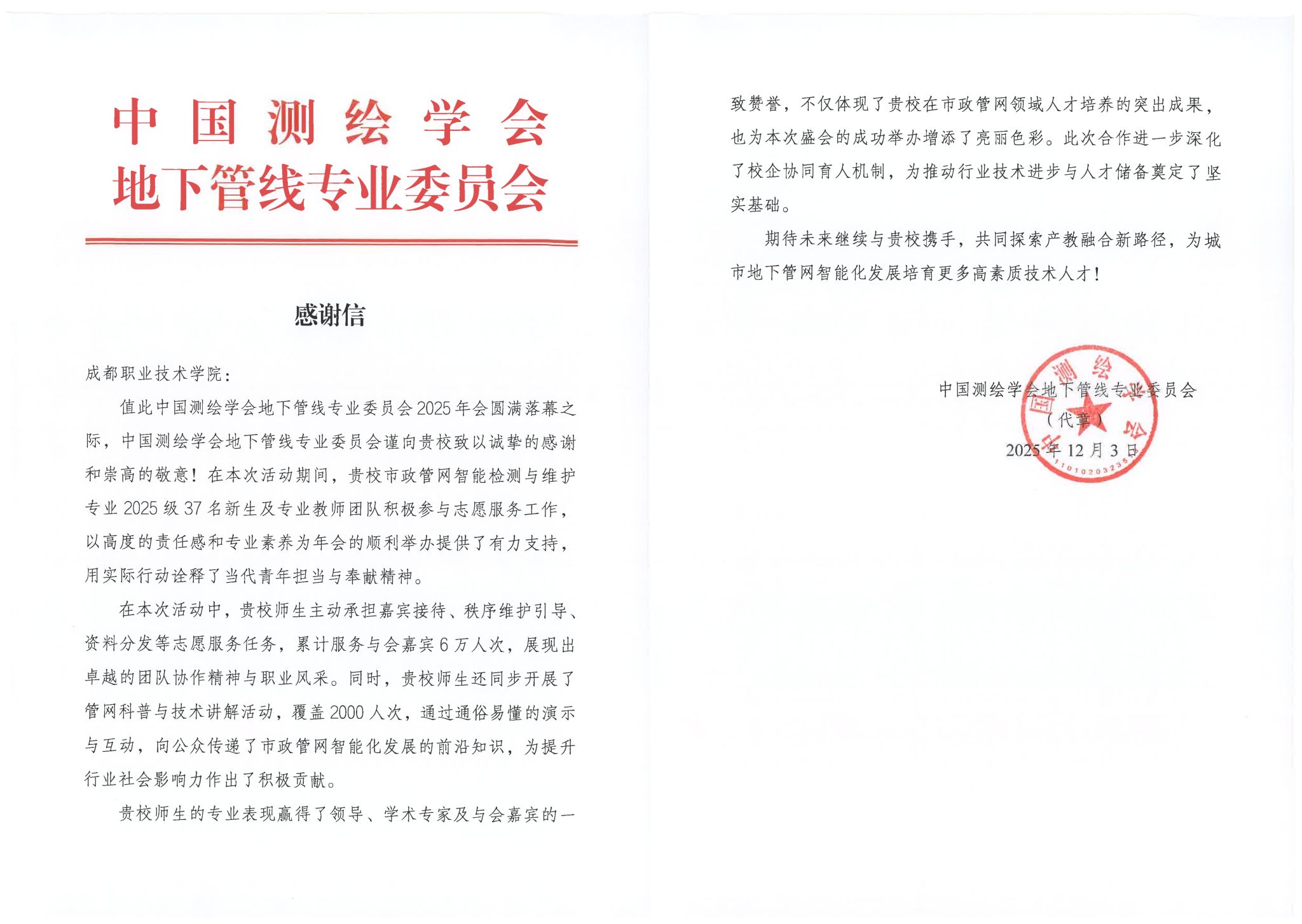 中国测绘学会地下管线专业委员会向我院发来感谢信近日,中国测绘学会地下...
