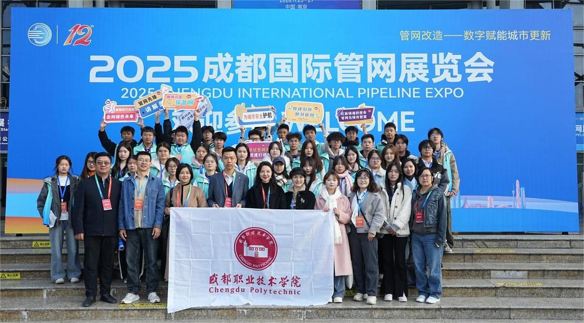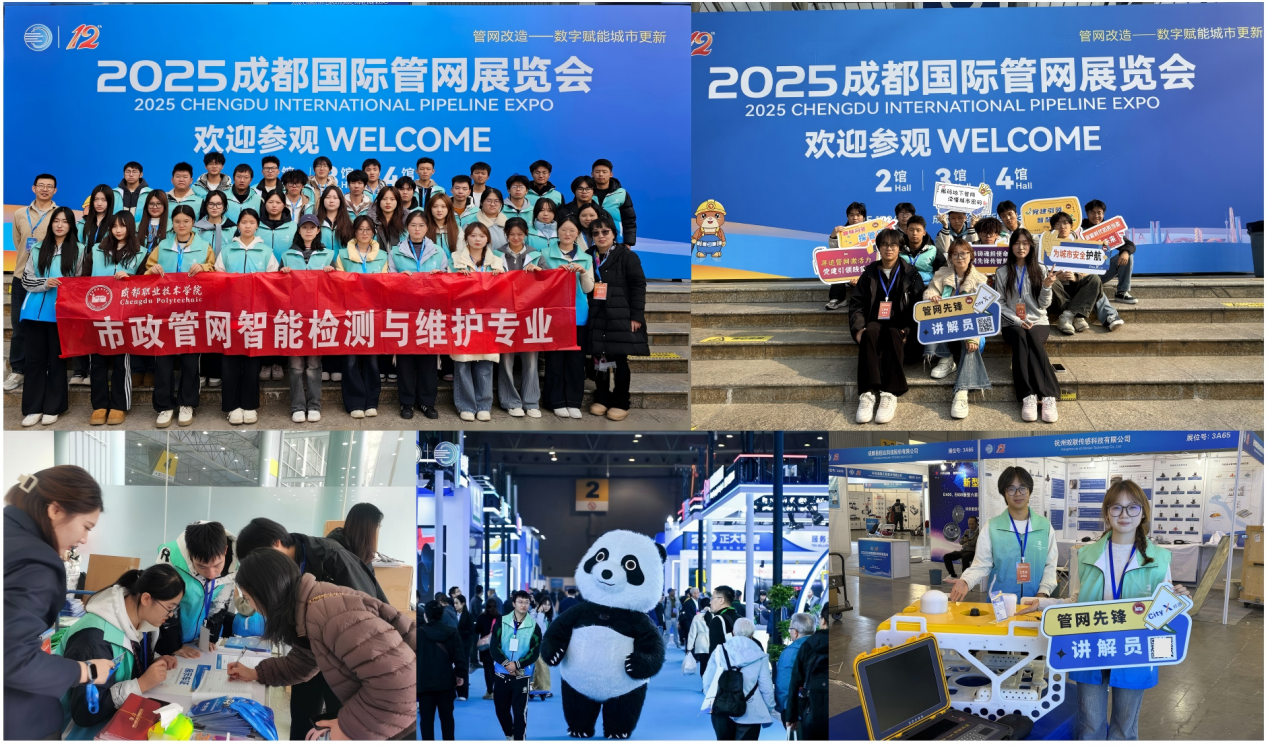 2025年11月24日至28日,中国测绘学会地下管线专业委员会2025年会暨第十二届中国(成都)国际管网展览会在成都世纪城新国际会展中心盛大举行。城市建设学院市政管网智能检测与维护专业37名新生与教学团队全程深度参与,以专业素养和奉献精神为展会成功举办注入"成职力量",全面展现了学校产教融合育人成果与专业建设特色。