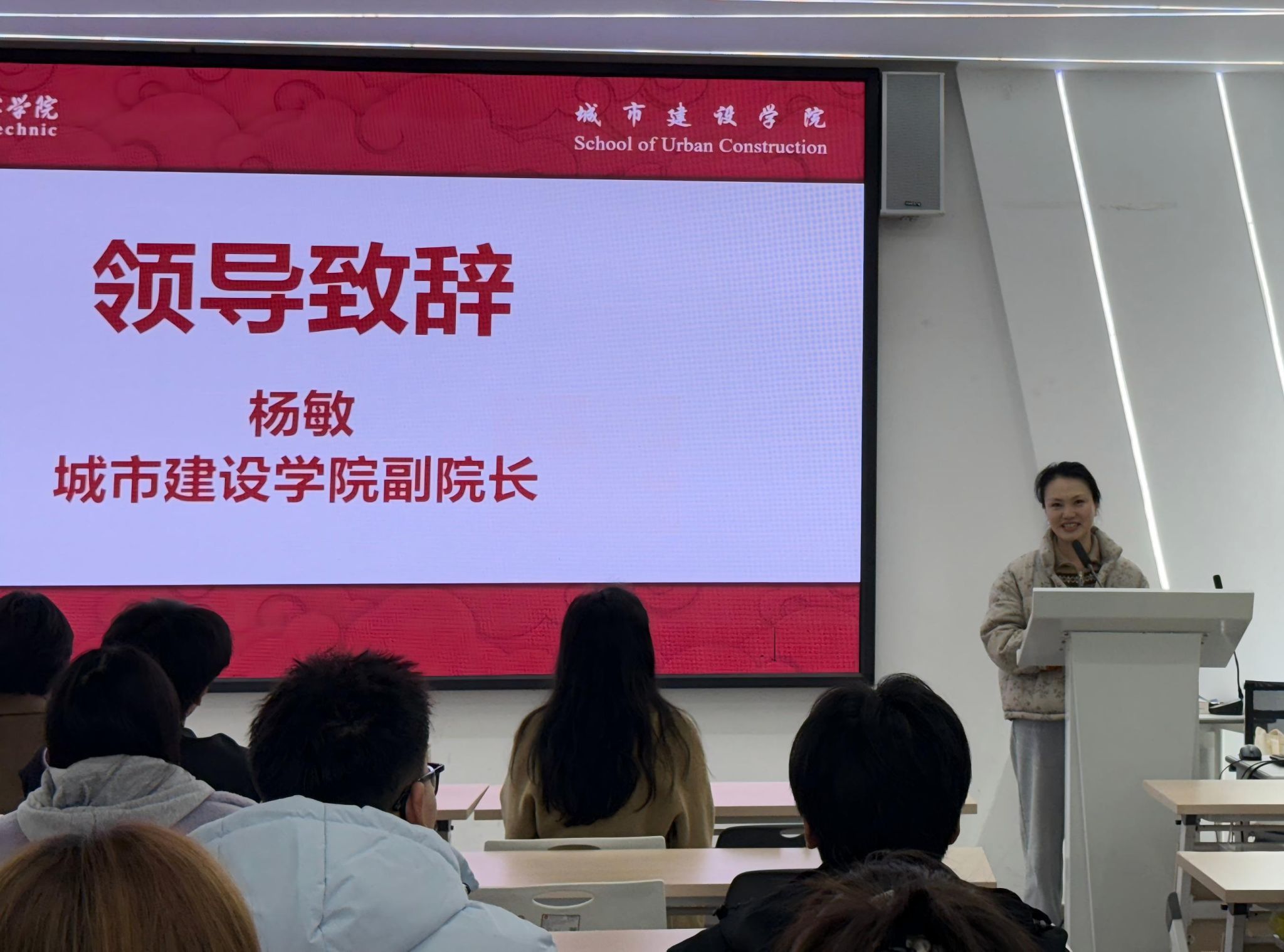活动伊始,城市建设学院副院长杨敏发表致辞。她充分肯定了同学们在第十二届中国(成都)国际管网展览会上的卓越表现,强调市政管网智能检测与维护是智慧城市建设的关键环节,随着城市基础设施智能化发展,该专业领域前景广阔。杨敏副院长勉励同学们要把握行业发展趋势,深化专业认知,为未来城市发展贡献力量。