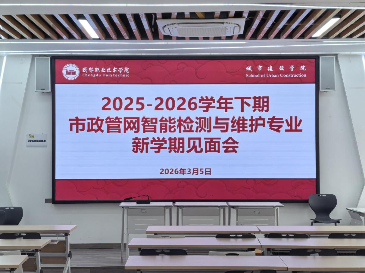 城市建设学院市政管网智能检测与维护专业召开2025-2026学年春季学期师生见面会 2026年3月5日,市政管网智能检测与维护专业在学院实训楼会议室召开新学期师生见面会。2025级全体学生、专业带头人陶媛媛、专业主任王云天、专业教师封永梅、辅导员赵明玲参与活动。 会上,专业主任王云天系统回顾了上学期专业建设成果,包括学生在“四川省职业院校技能大赛”中斩获团体二等奖、服务第十二届中国国际管网展览会认知实训活动等亮点成绩,充分肯定了学生在专业技能与团队协作方面的显著进步。在新学期,专业将持续推动与区域智慧管网产业需求紧密对接,进一步完善实习实训设备与条件,拓展合作伙伴。专业带头人陶媛媛结合教学实践与学生成长需求,勉励同学们珍惜学习机会,主动参与创新项目,在实践中锤炼“精检测、懂维护、会智能”的核心能力,为未来职业发展筑牢根基。辅导员赵明玲老师也鼓励学生珍惜专业为大家创造的宝贵竞赛机会,全面提升自身综合能力。 会议现场气氛热烈,学生表示将以新学期为起点,以更饱满的热情投入专业学习与技能提升。此次见面会为新学期专业建设与学生成长注入了强劲动力,进一步凝聚了师生共识,助力培养高素质市政管网智能运维技术技能人才。
