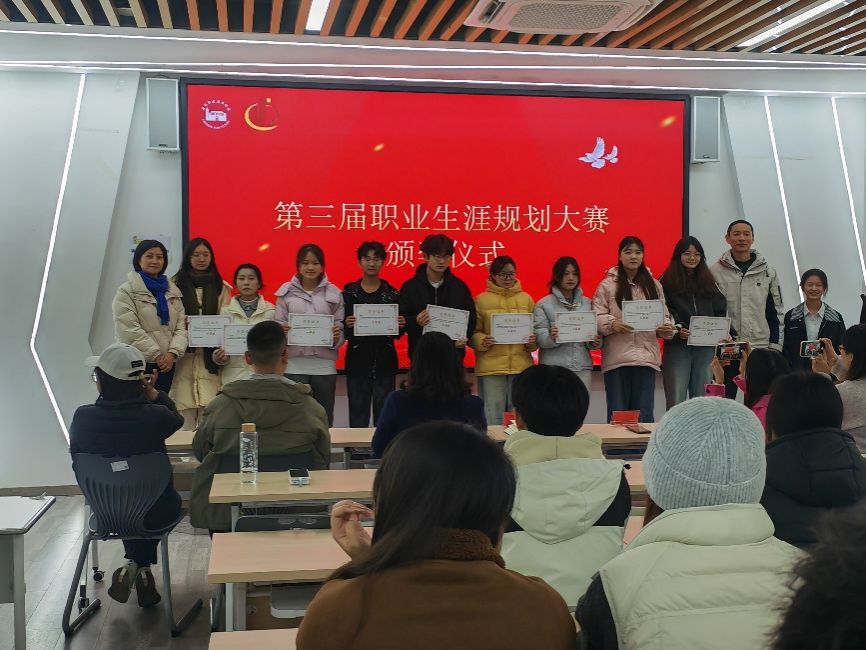 十二月暖阳遍洒校园,为进一步弘扬榜样力量、激励先进,营造“比学赶超、争当先锋”的浓厚校园氛围,成都职业技术学院城市建设学院召开“青春向党・榜样力量・筑梦城建”先锋模范表彰会。学院党总支副书记王菱、学工办主任兼分团委书记李稳军、学工党支部书记李雪及各年级辅导员与全体学生齐聚一堂,参与此次表彰大会。 王菱副书记在致辞中,特别肯定表扬了在分院、班级以及各项专项活动中起表率带头先锋作用的同学,鼓励全体同学以榜样为镜、向先进看齐,将青春热血融入城市建设的时代浪潮。 (王菱副书记致辞) 表彰环节高潮迭起,三类先进典型依次登台受奖:职业生涯规划大赛中,3名同学获一等奖、2名获二等奖、8名获三等奖;5名同学获评分院“先进积极分子”,以实际行动践行青春誓言;57位同学分五批次领取“班级先锋模范标兵”荣誉,彰显团结奋进精神。 (获奖人员合影) 此次表彰大会以践行 “博学笃行,厚德善建” 院训为核心导向,通过表彰先进、弘扬先锋模范的榜样力量,不仅为全体城建学子树立了可学可做的标杆,更以鲜活事例点燃了学子们的奋斗热情。大会精准锚定 “深耕学业、锤炼本领” 的成长目标,引导学子在专业学习中夯实基础、在实践锻炼中提升能力,为进一步深入推进 “匠心城才,智建未来” 的团学品牌文化建设提供了坚实的精神支撑与行动指引,助力构建兼具专业特色与育人温度的团学工作新格局,为培养更多适应城建领域发展的高素质人才筑牢思想根基与文化土壤。