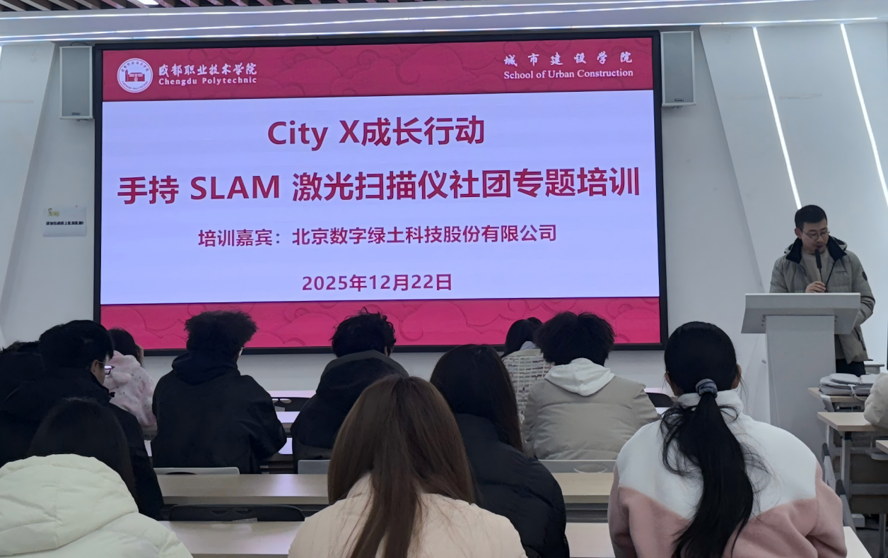市政管网智能检测与维护专业City X社团:SLAM激光扫描技术专题培训助力社团成长 2025年12月22日,市政管网智能检测与维护专业City X社团联合北京数字绿土科技股份有限公司成功举办"手持SLAM激光扫描仪技术应用"专题培训。作为市政管网智能检测与维护专业学生社团自主策划的成长行动,本次活动吸引了本专业全体学生及学院相关专业师生的积极参与,充分展现了社团立足专业、服务学生的宗旨。 活动由社团指导团队成员陶媛媛教授、王云天博士全程指导,工程造价专业主任张颖老师出席活动。北京数字绿土科技股份有限公司西南区域经理王找玉携技术团队,为社团成员带来了一场紧贴市政管网检测需求的专业培训。 在理论教学环节,技术专家重点解析了SLAM光扫描仪在市政管网领域的核心应用场景。通过"原理讲解+行业案例+技术演示"三位一体的教学模式,系统展示了该设备在管道内部结构扫描、病害识别、三维建模等市政管网检测关键环节的技术优势,特别是针对复杂管网环境下的数据采集难点进行了深度剖析。 实践操作环节中,社团成员分组体验了从设备启动、场景扫描到点云数据生成的完整工作流程。在技术人员指导下,同学们完成了模拟管道场景的三维建模任务,并通过软件平台直观观察扫描成果。这种沉浸式学习方式让社团成员深刻体会到高精度测绘技术对管网运维的革新价值。 活动结束后,社团成员纷纷表示收获颇丰。社团负责人邓思钰表示:"这次培训让我们看到了课堂知识在实际工作中的应用方式,特别是管道病害识别的案例分析,对我们的专业学习很有启发。"社团组织的此类专业培训有效弥补了传统教学在实践环节的不足,为培养具备技术应用能力的市政管网人才提供了创新路径。 作为市政管网智能检测与维护专业的学生社团,City X社团始终以"技术赋能管网运维"为使命,持续开展校企协同育人实践。未来,社团将继续聚焦市政管网智能检测与维护领域,通过组织技术讲座、实训竞赛等活动,打造专业实践的第二课堂,为智慧城市建设培养更多高素质技术技能人才。