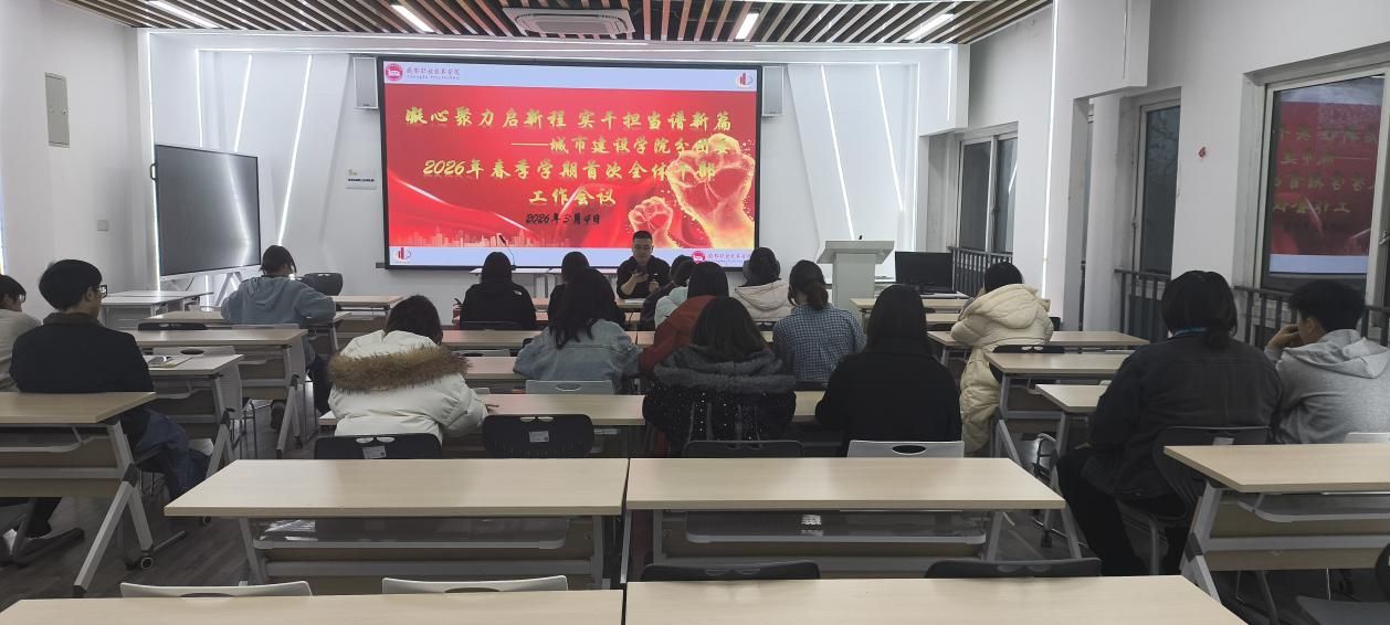 为统筹推进2026年春季学期分团委各项工作有序开展,充分发挥共青团思想引领、组织建设、实践育人、服务师生的核心作用,3月4日19:00,城市建设学院分团委在城建大楼A203会议室召开春季学期首次全体干部工作会议。会议由分团委副书记周彬主持,全体干部参会,共同谋划新学期工作布局。 本次会议以“凝心聚力启新程 实干担当谱新篇——以‘匠心城才,智建未来’为特色品牌,统筹新学期分团委工作”为主题,围绕思想建设、日常工作、实践活动等九大重点任务全面部署,明确工作要求、细化任务分工,为新学期工作划定清晰方向、理清实施路径。 会上,周彬副书记逐项部署新学期核心工作。思想建设方面,重点规范入团积极分子培养与团员发展流程,同步启动年度评优筹备工作,挖掘青年先进典型,强化思想引领;日常工作中,有序开展常规主题活动,依托爱国主义主题活动厚植学子家国情怀,搭建多元志愿服务平台,引导青年践行志愿精神;同时全力推进各类学科竞赛与社会实践活动,紧盯时间节点、细化落实举措,实现以赛促学、以践促行。 针对校园大型活动与专项工作,分团委将紧跟校院两级部署,高效落实校园文体活动、普法主题活动及毕业季志愿服务等工作,保障各项活动平稳落地。会议着重强调,打造“匠心‘城’才,智‘建’未来”特色文化品牌是年度核心任务,要求全体干部将品牌理念融入各项工作,彰显学院特色、提升文化软实力。此外,会议明确各部门专项职责,统筹推进就业帮扶、优秀学子作品展示等工作,同时规范活动流程,要求所有活动提前提交完整策划与安全预案,确保工作安全高效开展。 会议最后对全体干部提出要求:要提高思想站位、明确职责分工、强化协作配合,以严谨务实的作风紧扣特色品牌建设,高质量完成各项任务;同时做好工作总结与问题整改,提升工作质效,切实发挥分团委桥梁纽带作用,全力服务青年成长成才。 此次会议的召开,为城建学院分团委新学期工作夯实了基础、凝聚了共识、明确了目标。全体分团委干部将以此次会议为契机,凝心聚力、真抓实干,以实干担当践行青春使命,推动学院共青团工作提质增效,为培养高素质城建青年人才贡献青春力量。