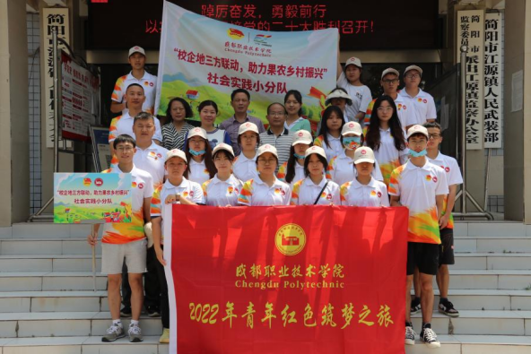 为深入学习习近平总书记在庆祝中国共产主义青年团成立100周年大会上的重要讲话精神,引导和帮助广大青年学生上好与现实相结合的“大思政课”,在社会课堂中“受教育、长才干、作贡献”,坚定信念听党话、跟党走,迎接党的二十大胜利召开。成都职业技术学院城市建设学院在“乡村振兴”战略以及“科技支农”的背景下,打造了“校企地三方联动,助力果农乡村振兴”团队,前往学校定点帮扶的简阳市江源镇团岭村实施“三下乡”活动项目。