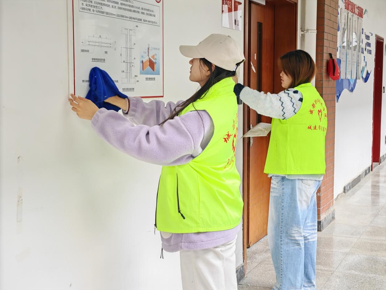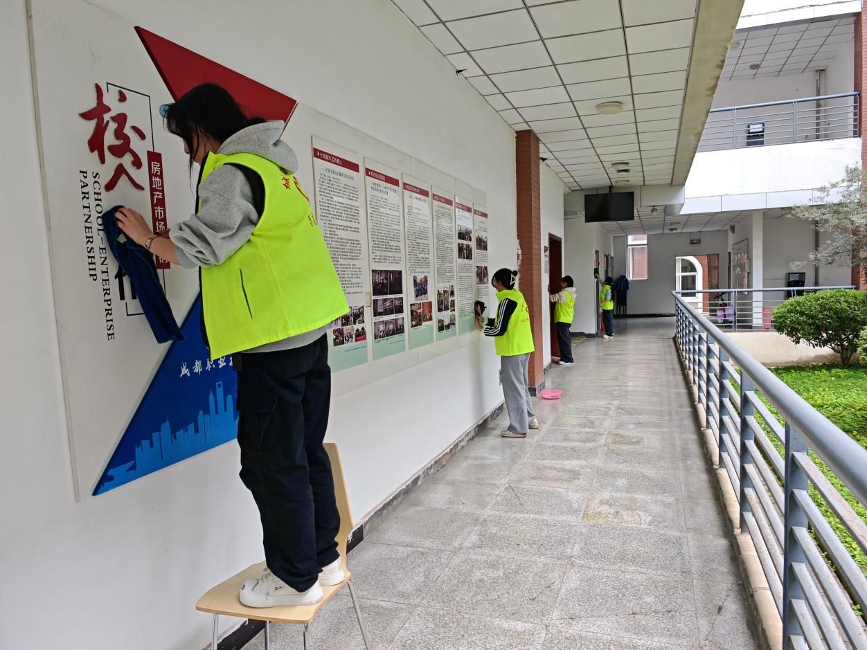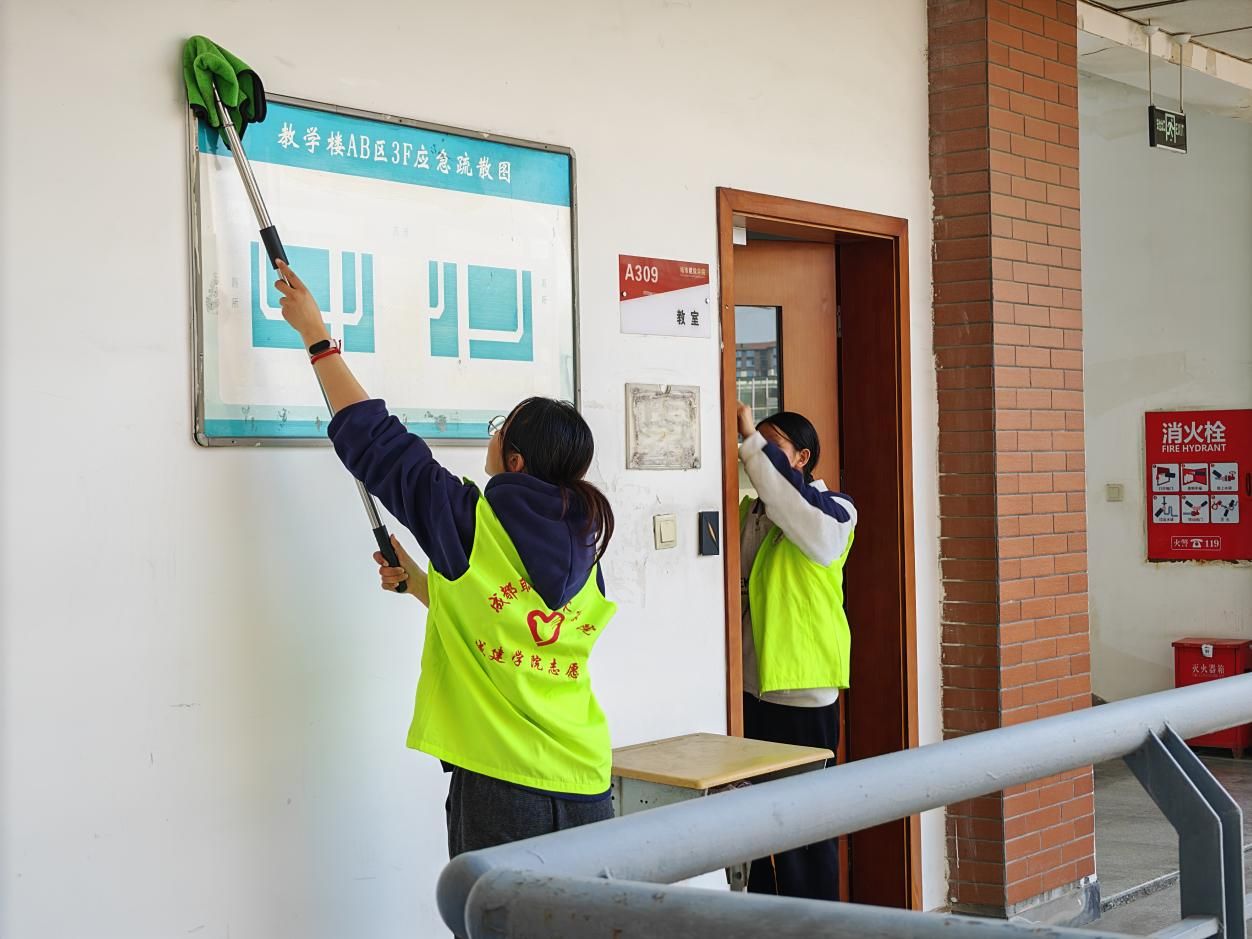 洁美校园展新颜 志愿同行践初心——城建学院开展教学楼墙面净化专项行动