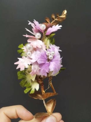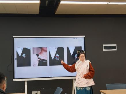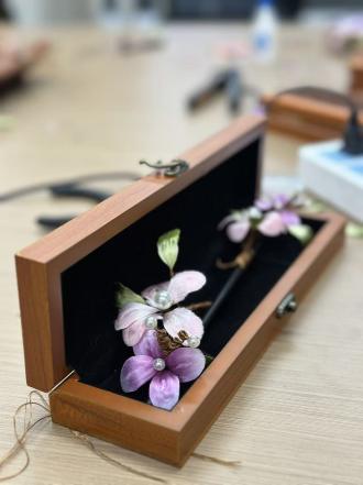 活动伊始,非遗绒花制作传承人宦黎铭老师为大家揭开了绒花技艺的神秘面纱。从“荣华”的吉祥寓意讲起,追溯其始于秦汉、盛于唐代的辉煌历史,在唐代绒花作为扬州绒花被列为皇室贡品,武则天时期尤为盛行。详细介绍9个制作步骤的技术技巧和工艺特征,大家不仅深入全面了解这项拥有上千年历史的非遗技艺,更对中国传统文化中蕴含的审美情趣与工匠精神深感敬佩。