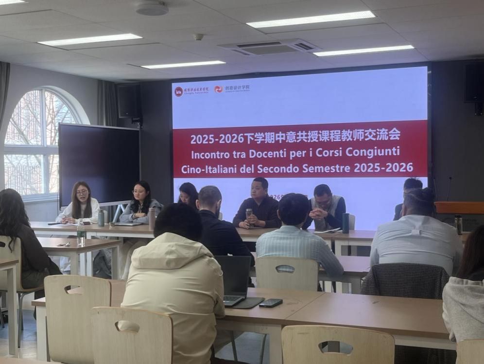 2026年3月11日下午,创意设计学院2025-2026下学期中意共授课程教师交流会如期举行。会议旨在进一步加强中意双方在教学协作、课程共建与文化交流方面的深度合作。