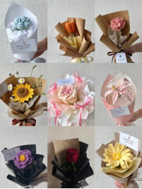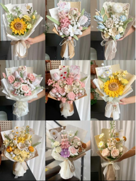 5、以针为桥,以线为媒,在协作编织中促进同伴间的交流与陪伴,让共同完成的花束成为联结情谊的温暖信物。