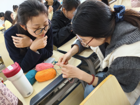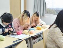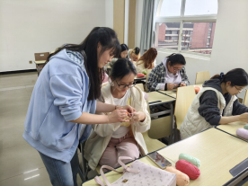 制作过程中,陈老师全程耐心指导,逐一解答针法疑问,从技法纠正到配色建议,细致入微地帮助同学们攻克难点。不少同学从最初的手忙脚乱,到逐步掌握技巧,看着自己手中诞生的第一朵钩花,脸上写满了成就感。现场气氛温馨而专注,针线交织的窸窣声与欢声笑语此起彼伏。