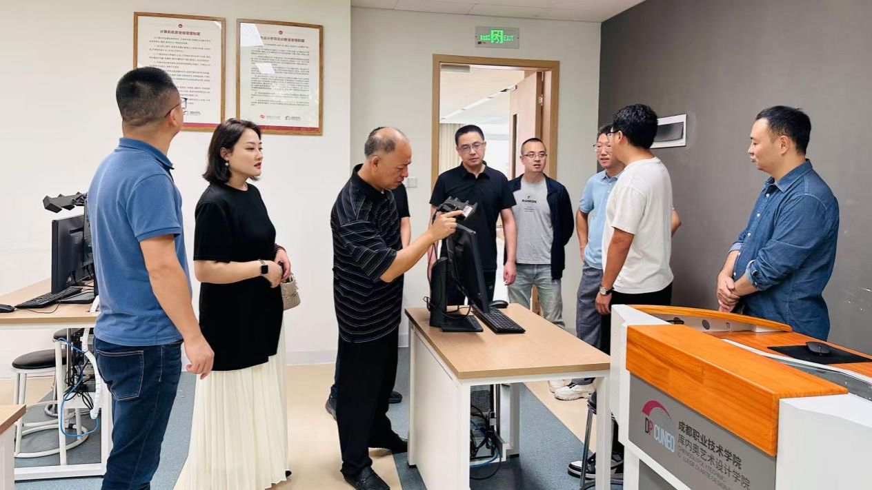 9月24日,重庆职业教育学会传媒艺术专委会理事长刘晓东率队一行8人,莅临成都职业技术学院创意设计学院(花源校区)开展参观交流活动。我院副院长张芝敏、谢科及相关专业主任陪同交流。
