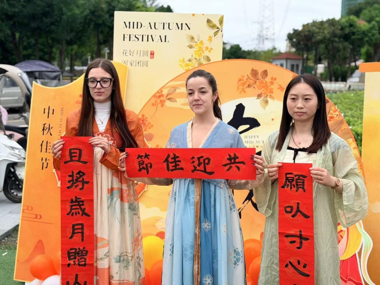 9月29号,受新津区人民政府外事办公室、花源街道柳河社区“月满中秋·情系集市”中秋主题活动邀请,库内奥艺术设计学院外教 Viktorija Kitanovska、Rebecca Commisso及相关人员参与文化体验活动。