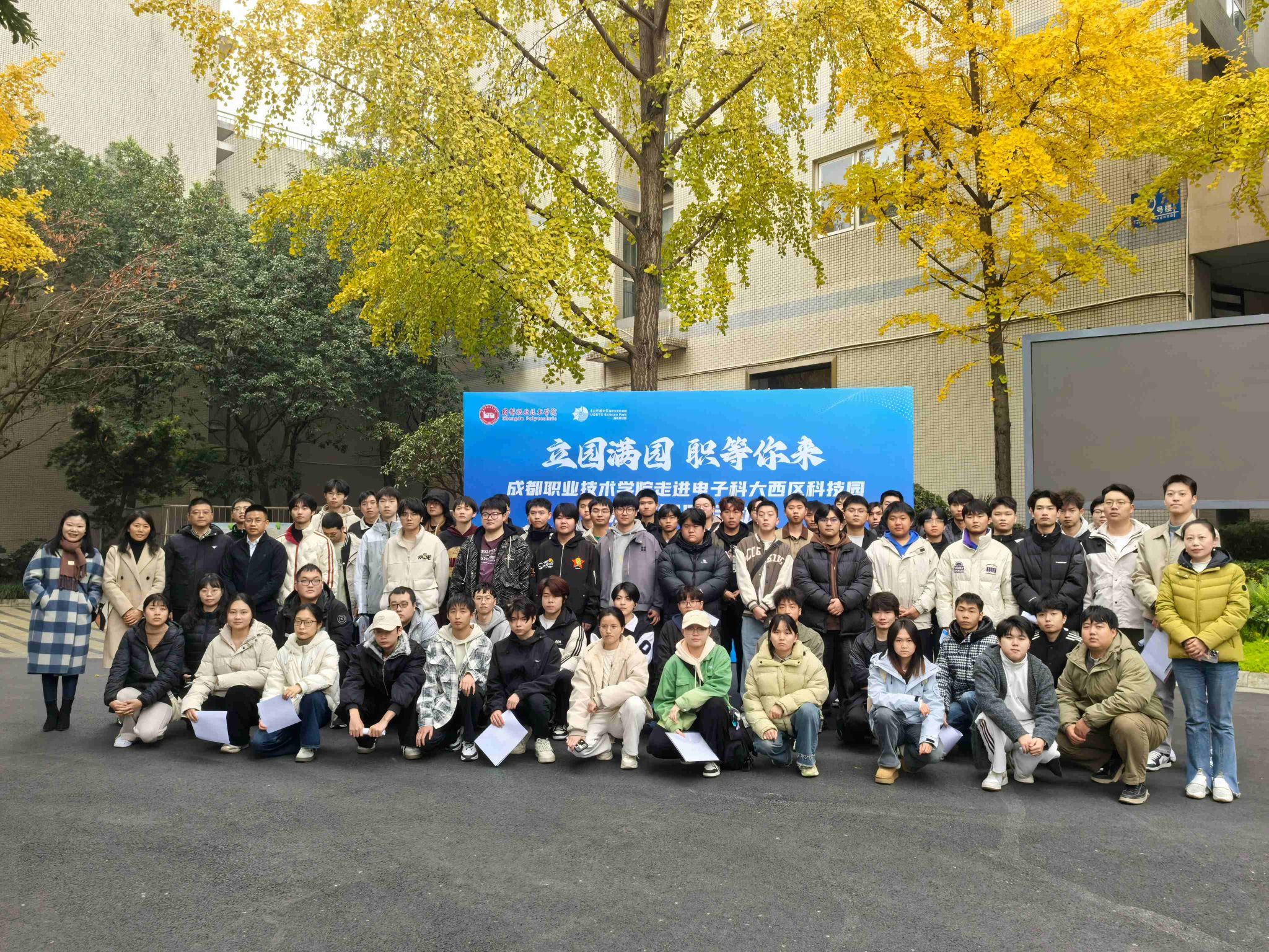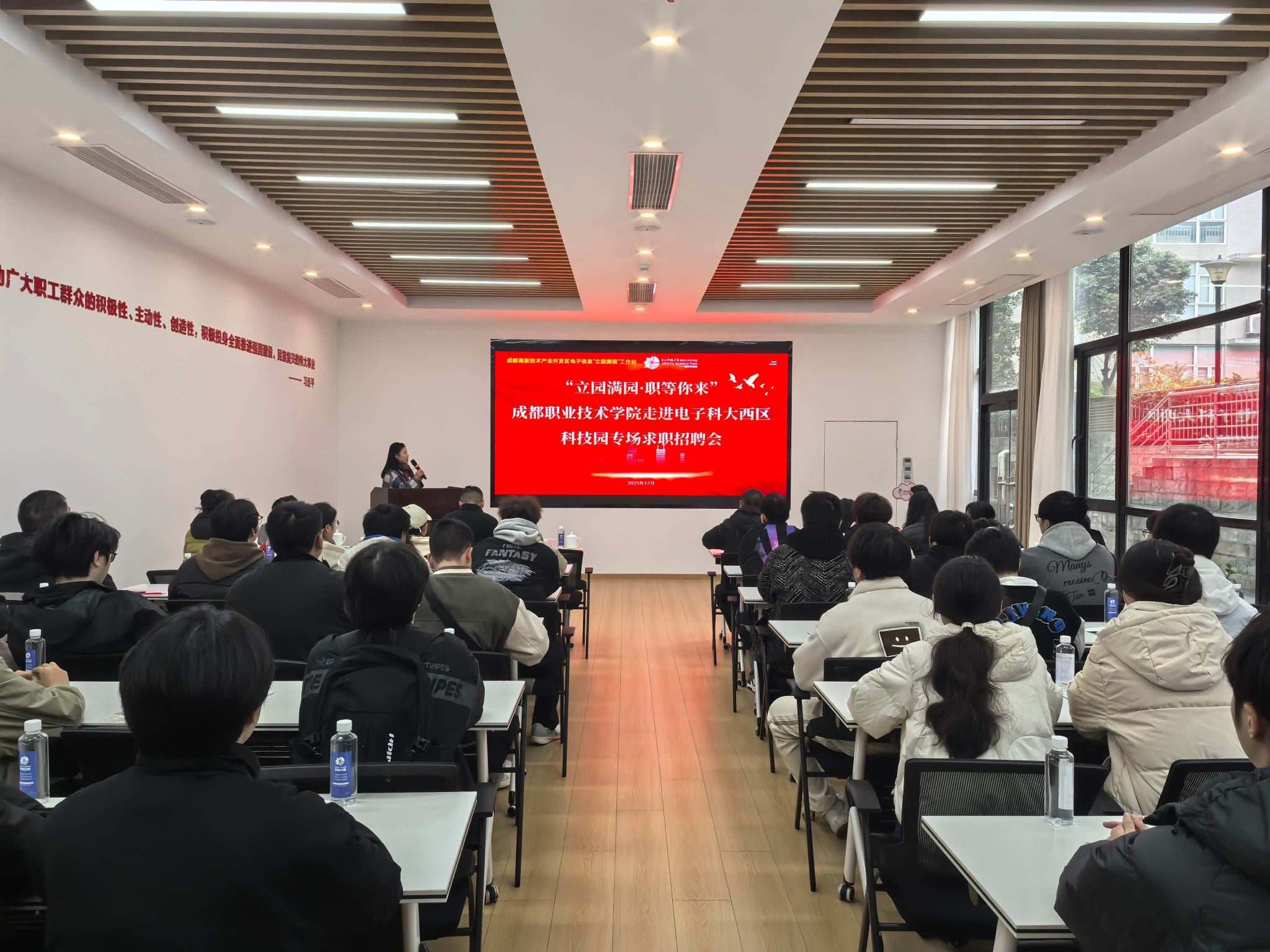 为推动毕业生更充分、更高质量就业,搭建校企“零距离”对接平台,2025年12月8日,成都高新技术产业开发区电子信息产业“立园满园”工作站联合成都职业技术学院、电子科大西区科技园、成都新一代信息技术产教联合体,成功举办“立园满园·职等你来”专场求职招聘会。本次活动创新招聘模式,将会场“搬”进产业园区,吸引成都职业技术学院70余名电子信息工程学院本专科应届毕业生参与。